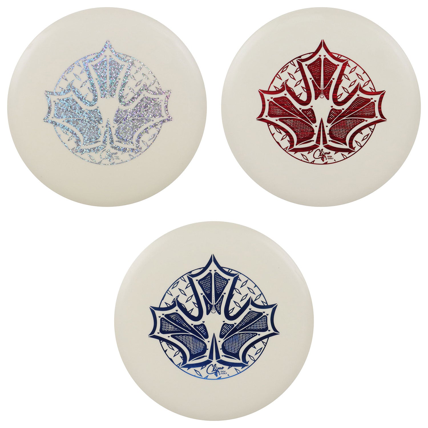 We’ve wanted to celebrate the iron leaf for a long time. Naming one of our early discs after it didn’t feel right, so instead we called up our friend and legendary artist Skeet Scienski and asked him to put his skills towards an Iron Leaf. Skeet has been a Climo fan for years and immediately got to work on a design to help us pay homage. This is a limited test batch of Glow Trophy Line with a single-foil stamp.