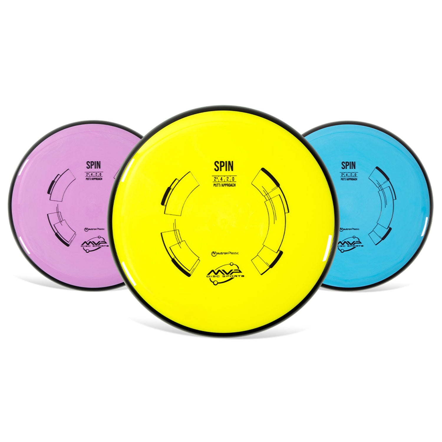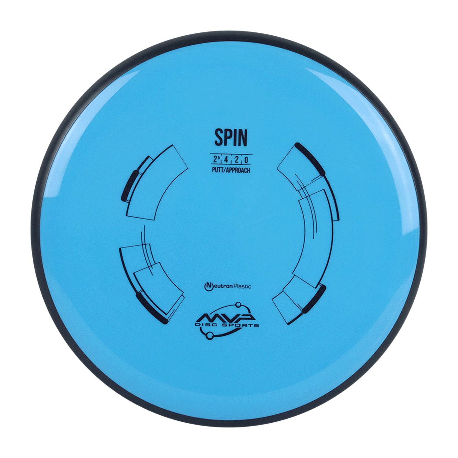 The Spin is an understable putter that debuted in Electron in the 2016 Circuit Player’s Pack. The Spin has a deep profile like the Ion and Anode, which makes it great for glide-filled lofty flights. Its controlled understability makes it suitable for both new and advanced players alike. MVP features the flagship material, Neutron. An opaque and grippy blend, Neutron is available in a variety of vibrant colors. MVP Neutron features all black GYRO rims.
