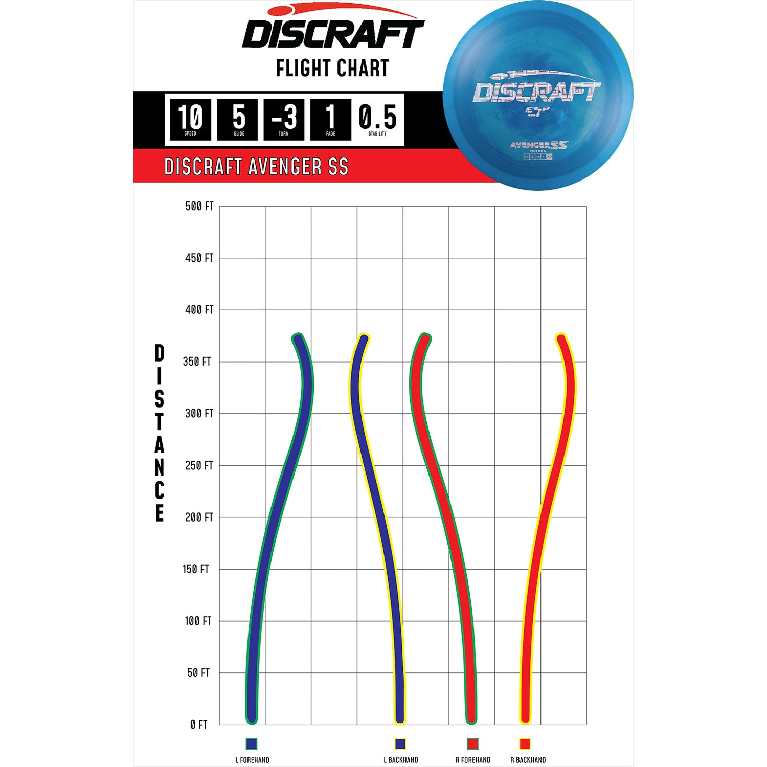 The beginner friendly Avenger SS gives some added understability to the Avenger driver with an easily activated turn for long flying shots or distance roller shots when thrown with power.