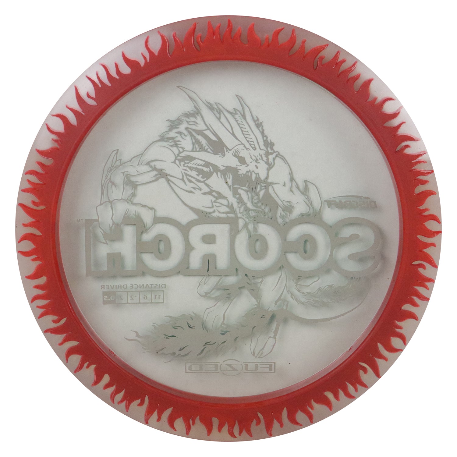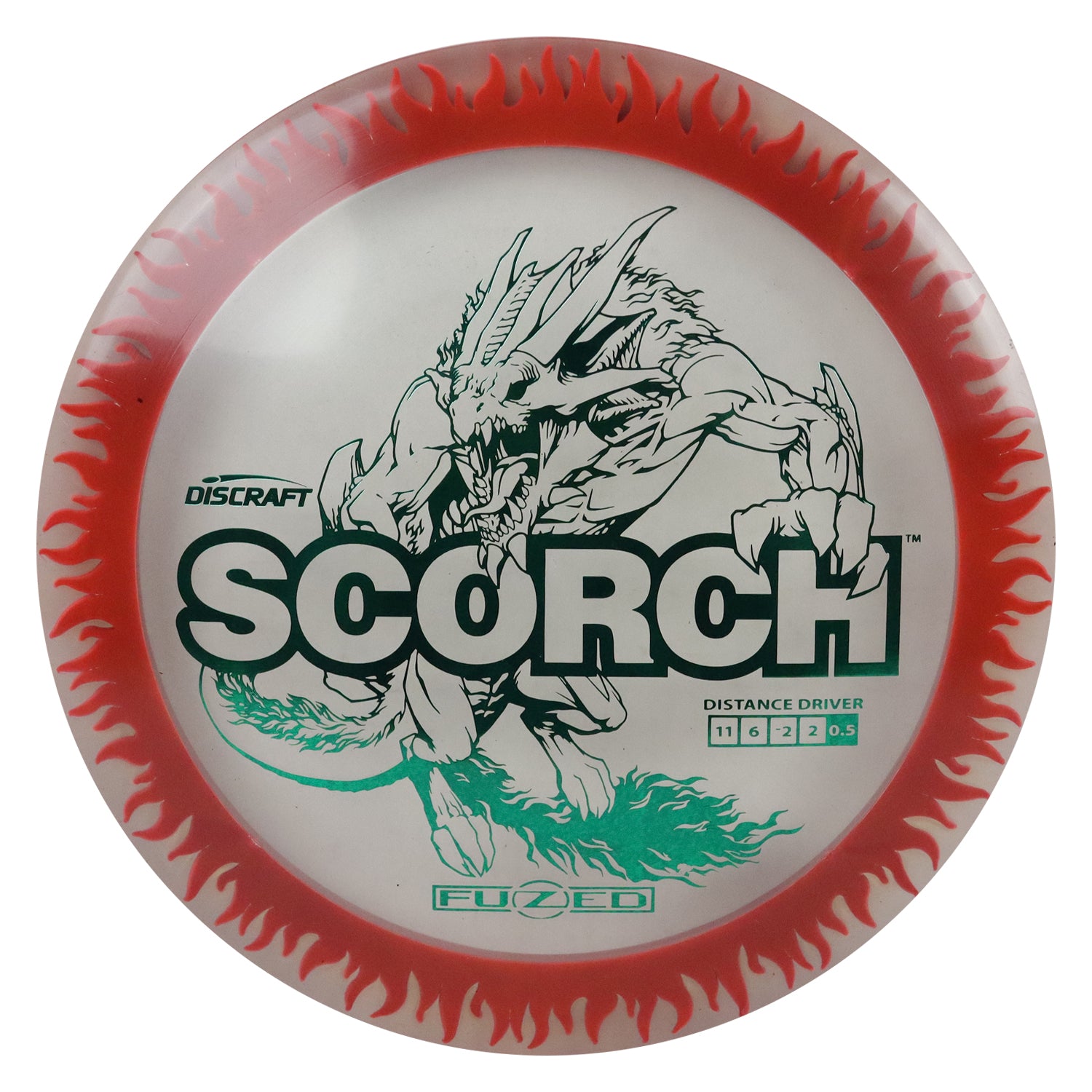 Discraft Disc Golf FuZed Line Scorch with Flame Pattern Distance Driver 11/6/-2/2 Clear with Red Flame/Green 173-174g
