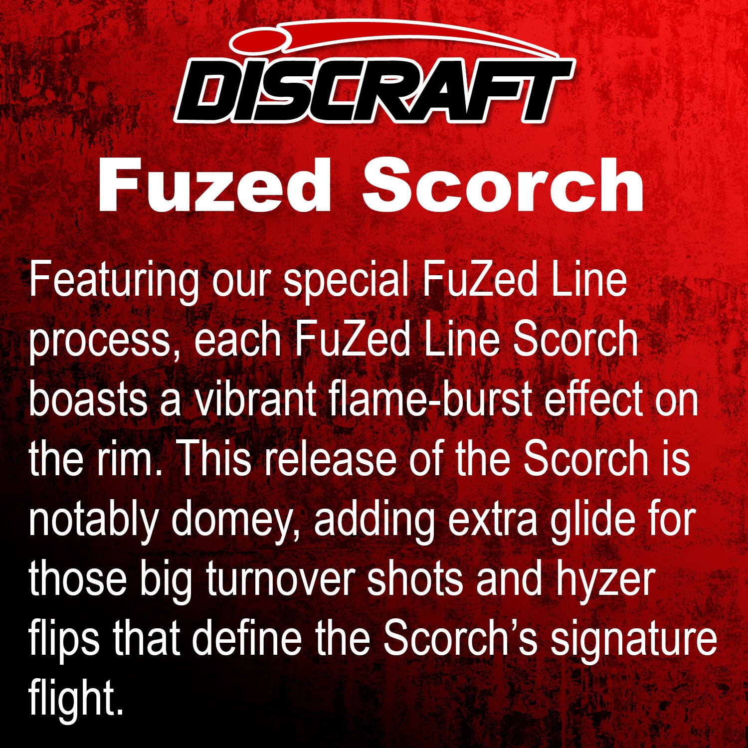 The long-awaited stock FuZed Scorch is here! Featuring our special FuZed Line process, each disc boasts a vibrant flame-burst effect on the rim. This run is notably domey, adding extra glide for those big turnover shots and hyzer flips that define the Scorch’s signature flight.