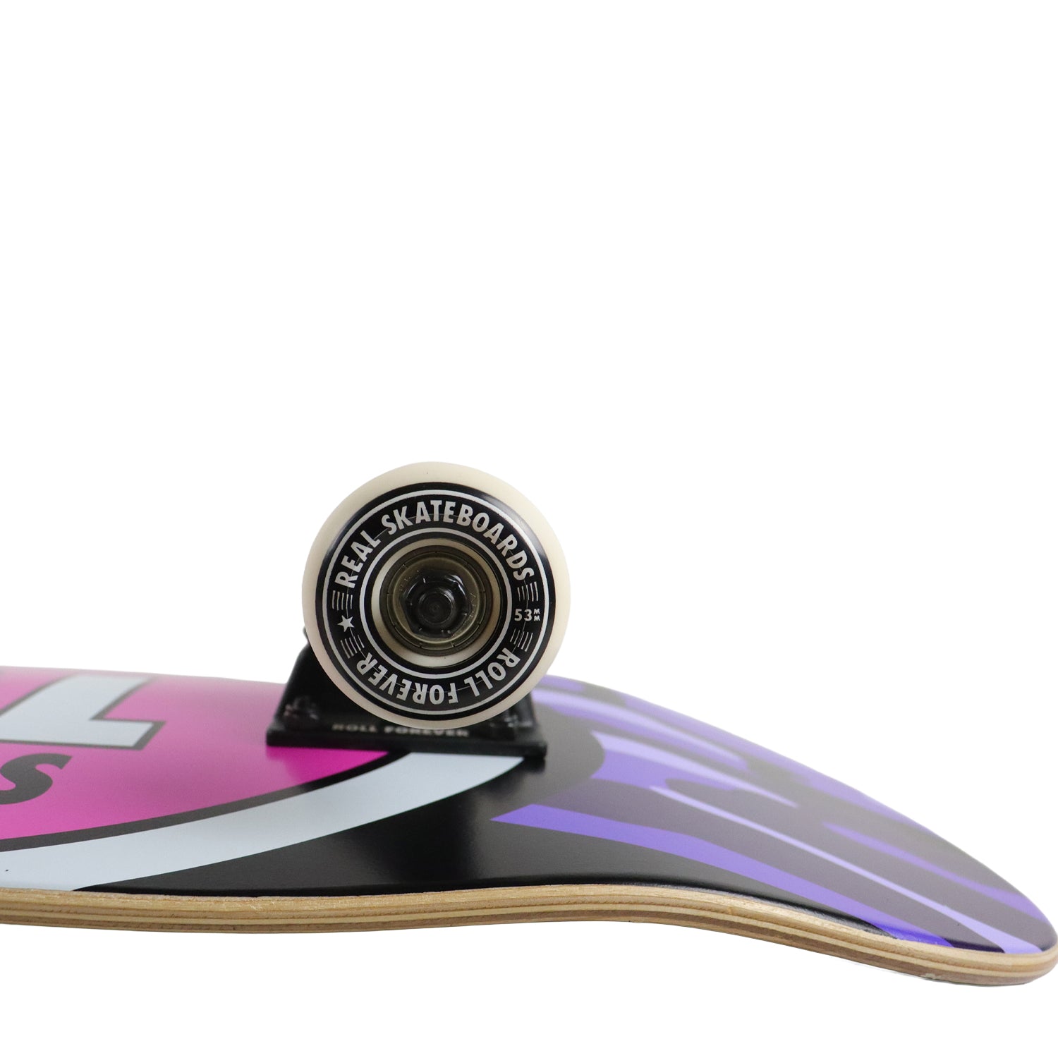 This Real Complete Skateboard arrives factory assembled and ready to ride. 7-Ply Maple Construction, this board measures 8.0" wide. Completed with factory parts, this board arrives assembled with heavy duty aluminum trucks, 53mm Real Wheels, precision bearings, and black griptape.
