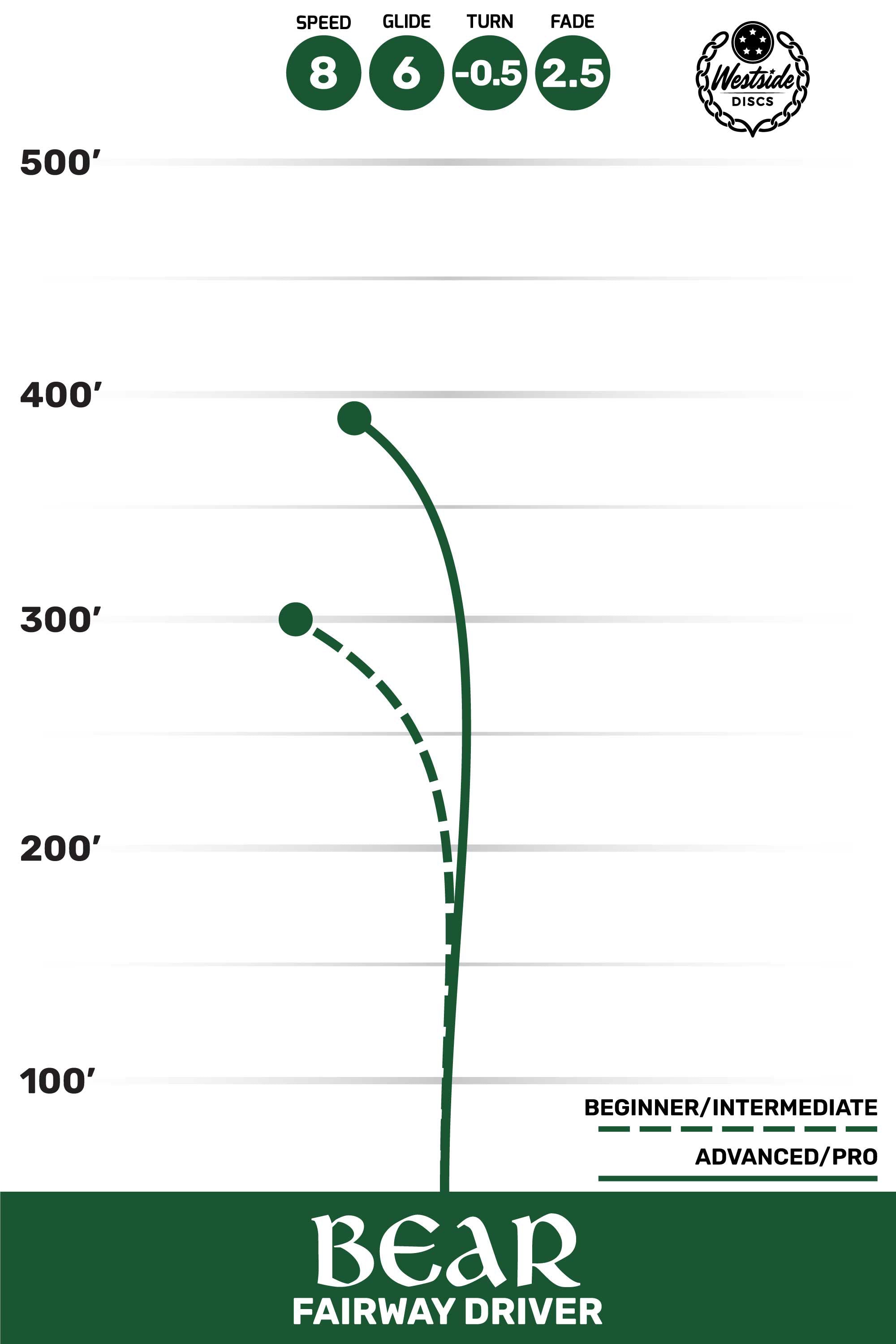 The Bear is here to control the fairways. The Bear has a neutral to slightly understable flight for the advanced player. Think of it as the big brother of the Stag. It is controllable, predictable, and has a touch more fade and torque resistance than its little brother. The Bear is strong enough to handle any arm speed.