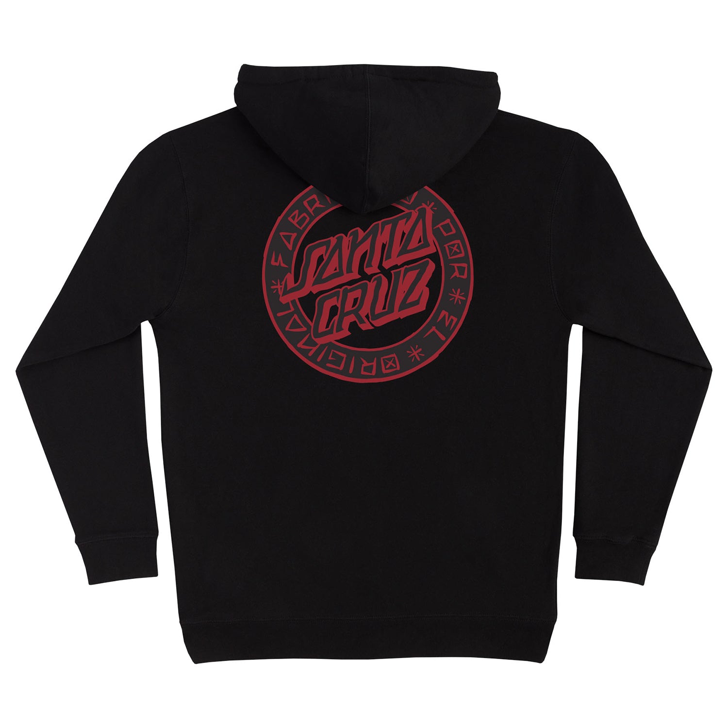 The Santa Cruz Loco Dot men's midweight fleece hooded pullover sweatshirt features small front and large back Santa Cruz Loco Dot logo prints in soft hand ink.