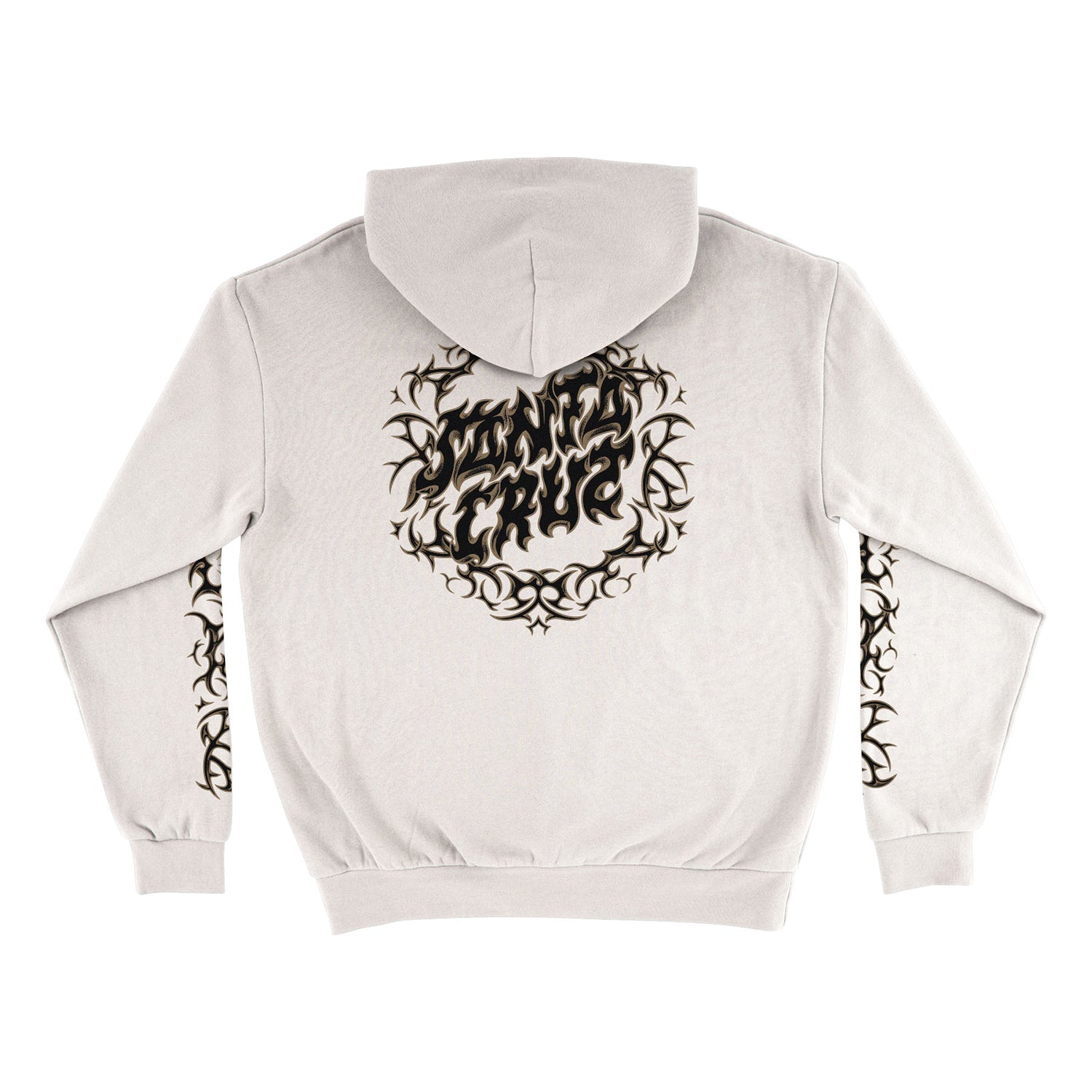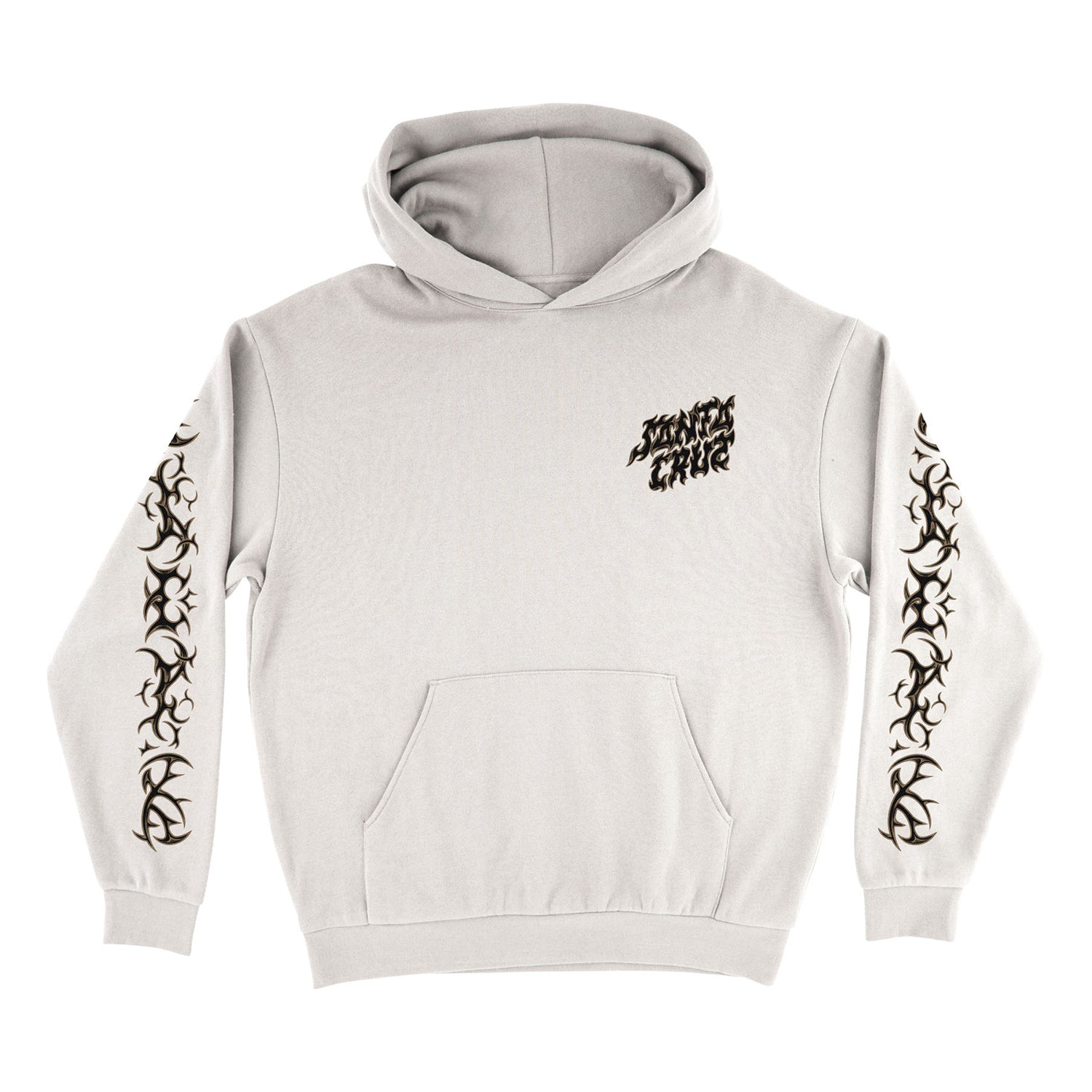 The Santa Cruz Razor Dot Center men's heavyweight fleece hooded pullover sweatshirt features small front, large back and sleeve Santa Cruz Razor Dot Center artwork printed in soft hand ink.