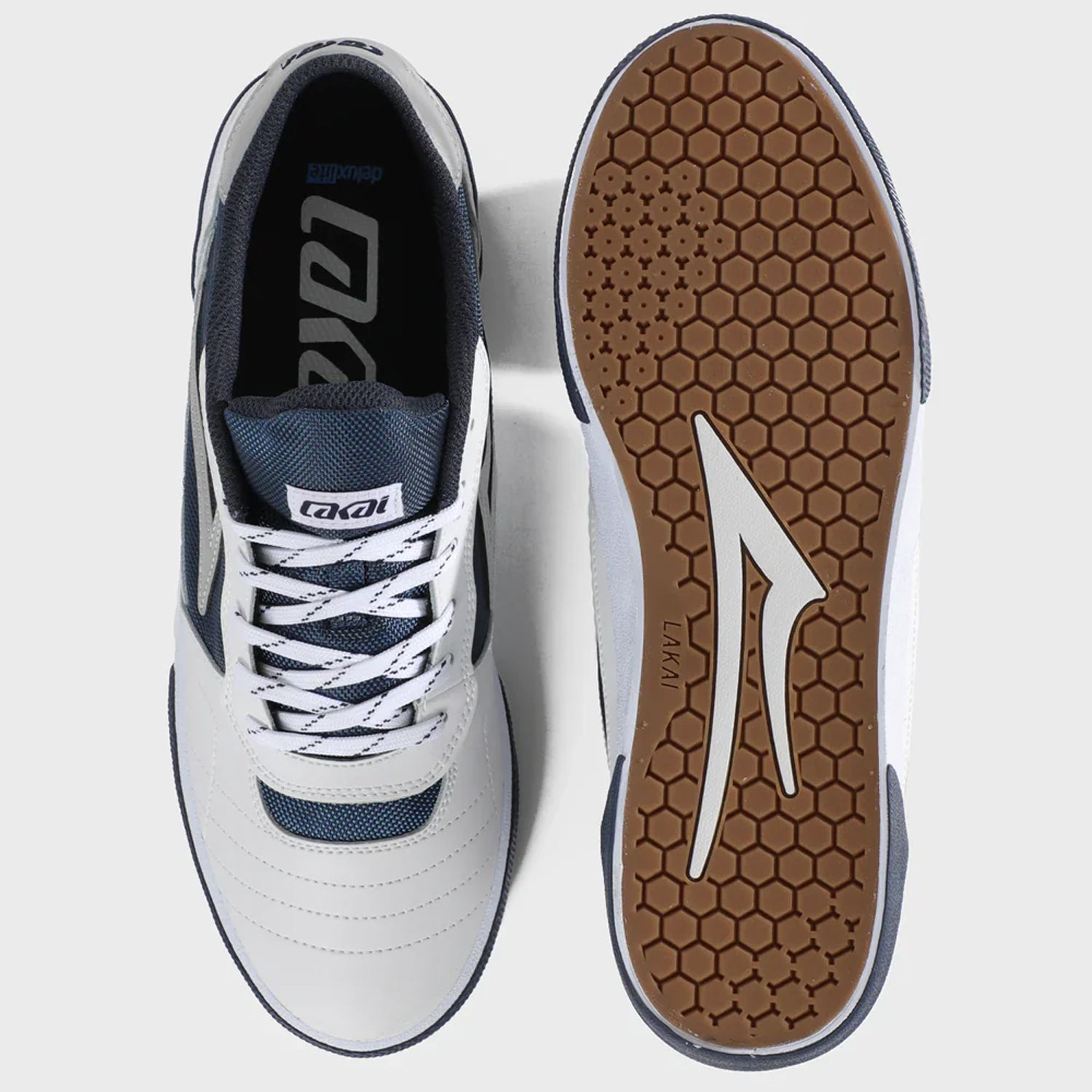 Lakai Skateboard Shoes Cambridge White Leather Reflective Navy