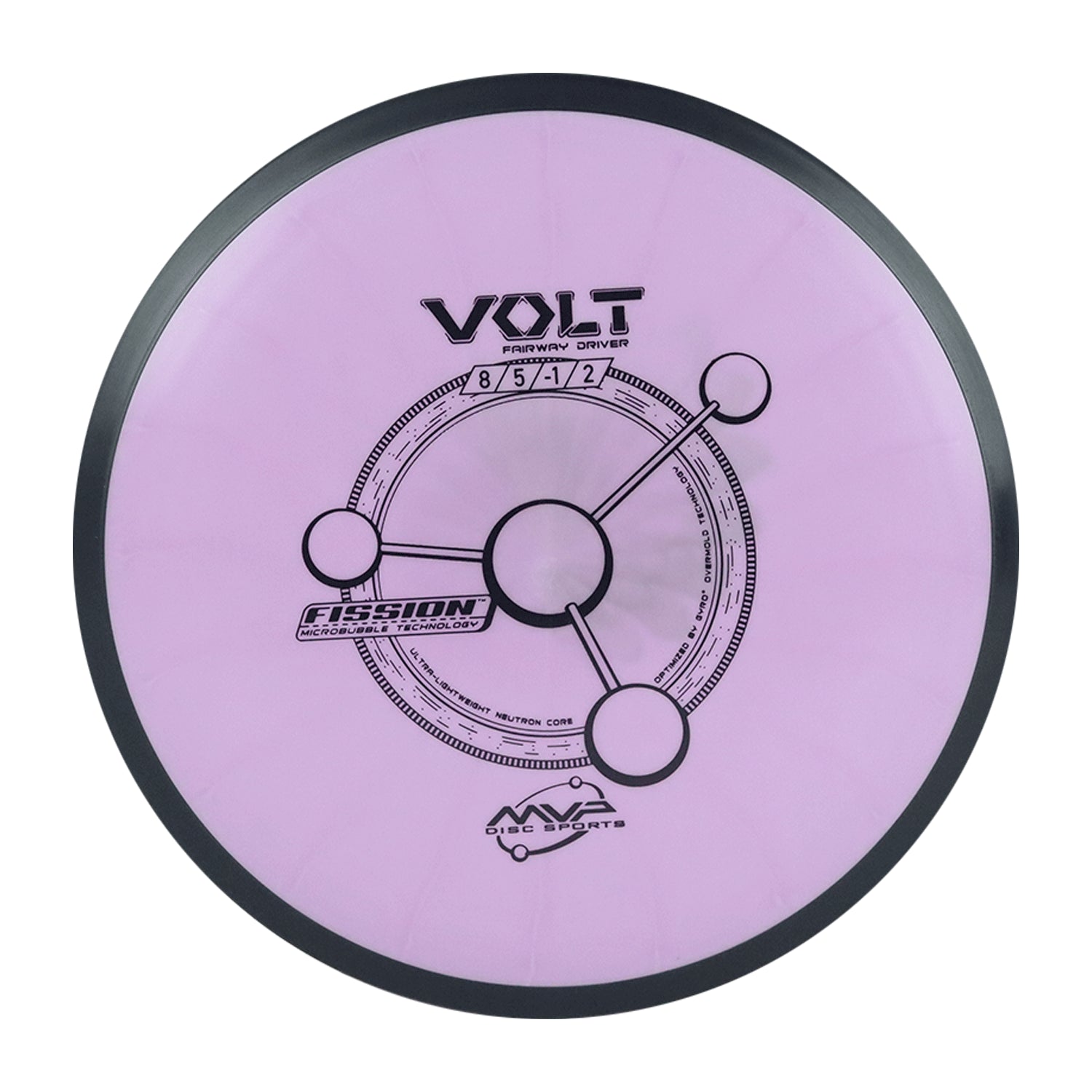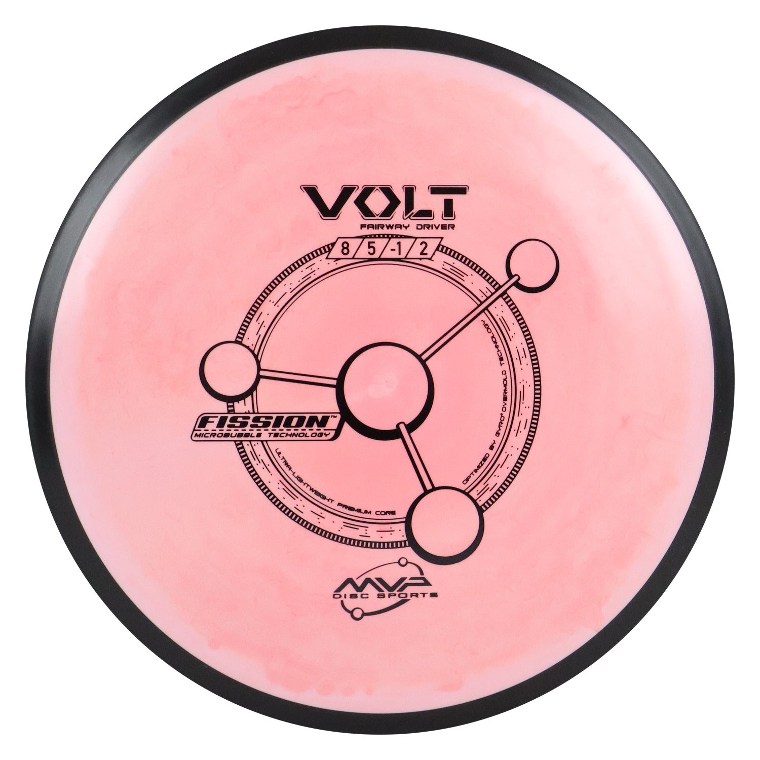 The Volt is a slightly overstable fairway driver. The Volt is geared for long, accurate placement shots. The Volt can hold a long straight line and with a solid, forward penetrating fade. Reach for the Volt when accuracy is needed on long, tight fairways. Fission is our breakthrough lightweight material. Fission Microbubble Technology can be used to create an exceptionally stable ultralight disc, or to increase the GYRO effect in a medium weight disc. Fission is opaque with a matte finish. Despite any comparisons, Fission is in a class by itself as the only lightweight/bubble plastic to ever address weight distribution. Sellers and throwers are constantly amazed that Fission exceeds the low expectations set by single-piece lightweight discs.