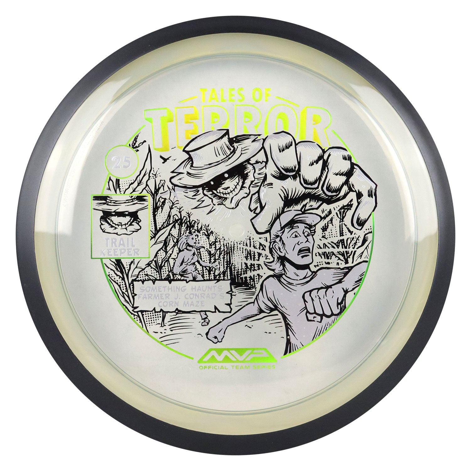 The highly requested fan favorite Proton Trail has returned! Green C Studio adorns this disc with a glimpse of the Trail Keeper haunting Conrad’s Corn Maze, a classic horror story. Excelling in hyzer-flip drives, turnovers, and straight shots, the Trail has become one of the most popular drivers in the MVP lineup that throwers of all power levels will find significant use for. You don’t have to get lost in a killer corn field to get your hands on one of these, just head over to your favorite local or online MVP dealer to get yours today!