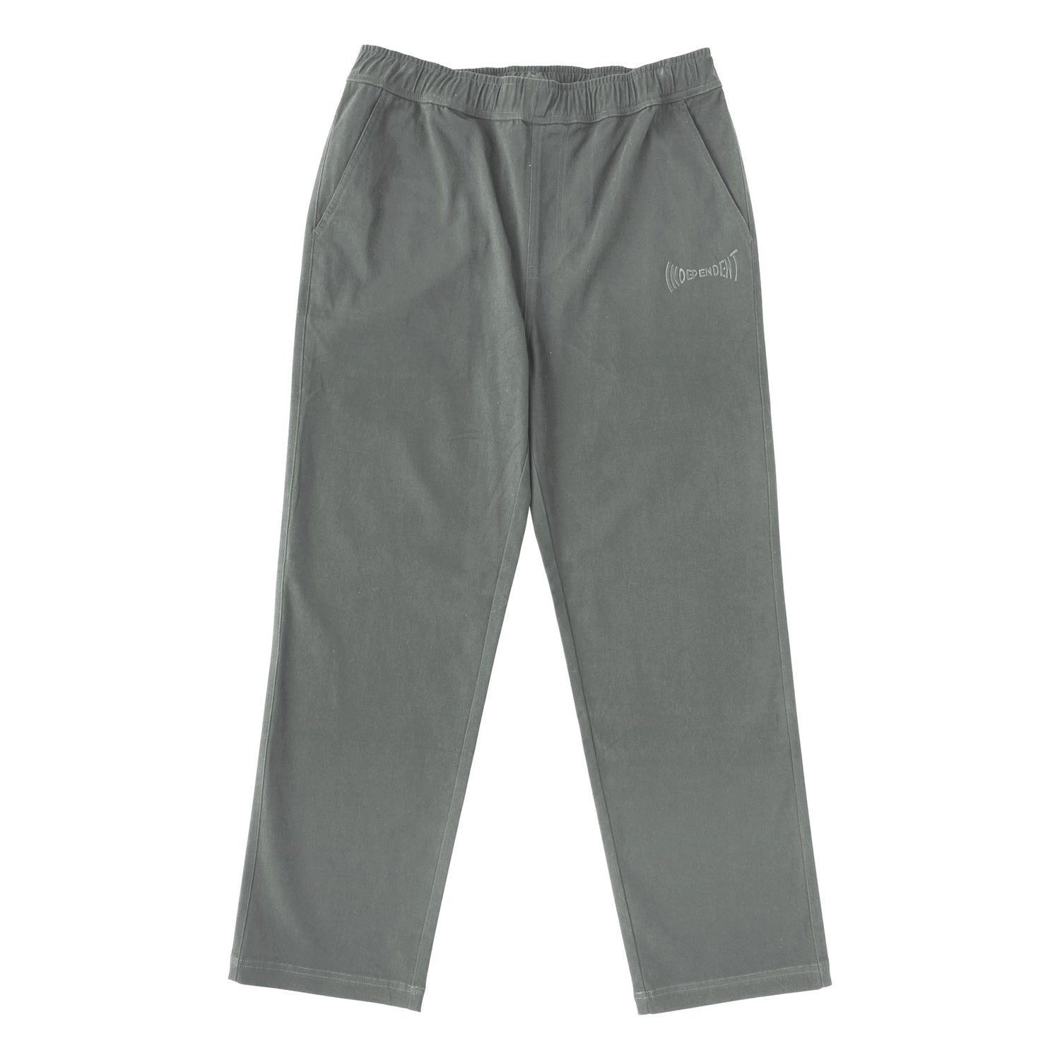 The Independent Span men's baggy fit, chino skate pant features elastic waist and inner drawcord, Independent Span logo at front leg and back welt pocket. Product Features: Men's baggy fit, chino skate pant. Elastic waist and inner drawcord. Independent Span logo at front leg. Back welt pocket. 98% Cotton/2% Spandex.