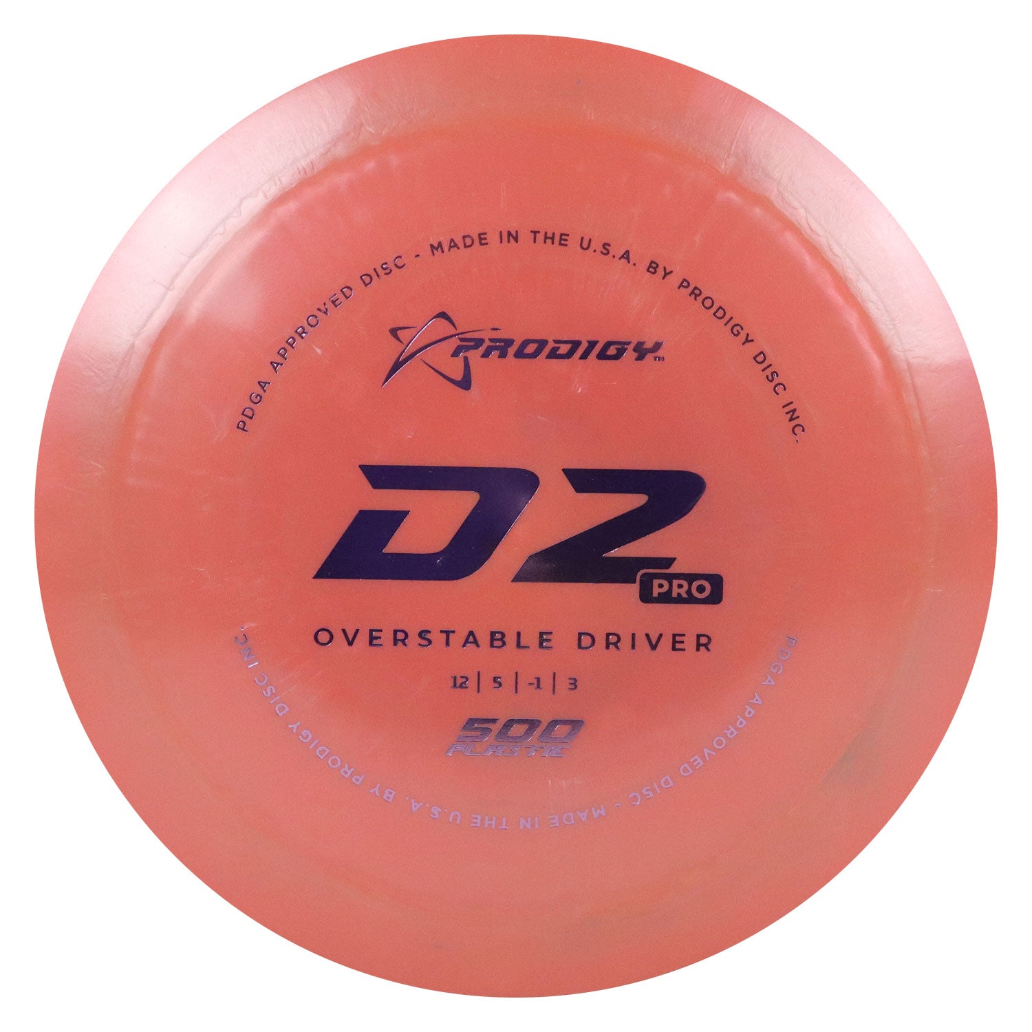 Prodigy Disc Golf 500 D2 Pro Distance Driver 12/5/-1/3 Peach/Lavender 172 grams