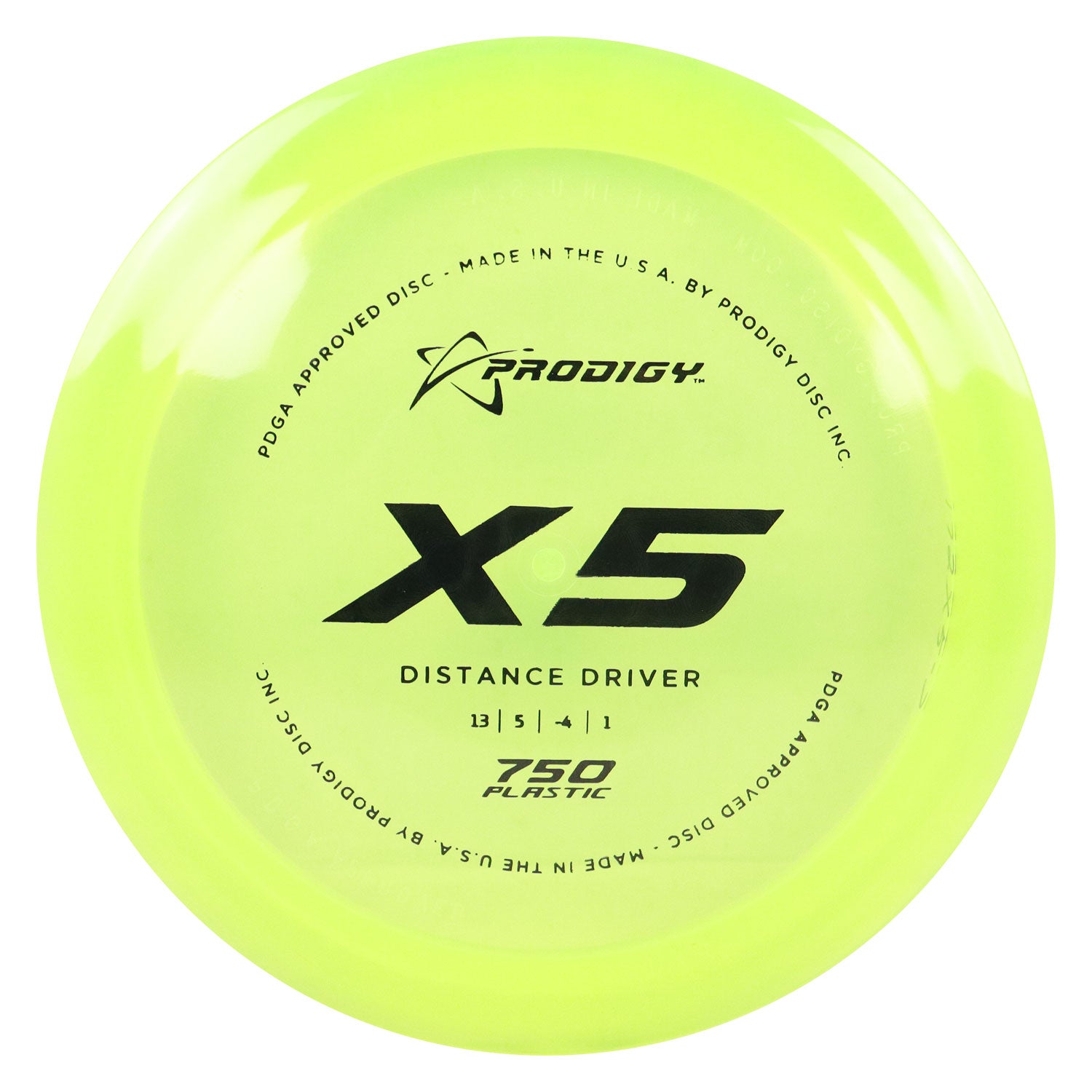 The Prodigy Disc X5 is an understable, low profile, high-speed distance driver. It is great for all players. Players with lower arm speed will get a lot more glide and distance. Players with moderate arm speed will be able to get a long flight out of this disc by throwing a slight hyzer flip. (Left edge down about 20% from flat at release). For players with faster arm speed, the X5 will flip early in its flight path and will turn right, with a soft finish to the left making it useful for wooded holes that require shaping the shot. It will also be great for long controlled rollers. The X5 performs very well at low heights and in tunnel shots.