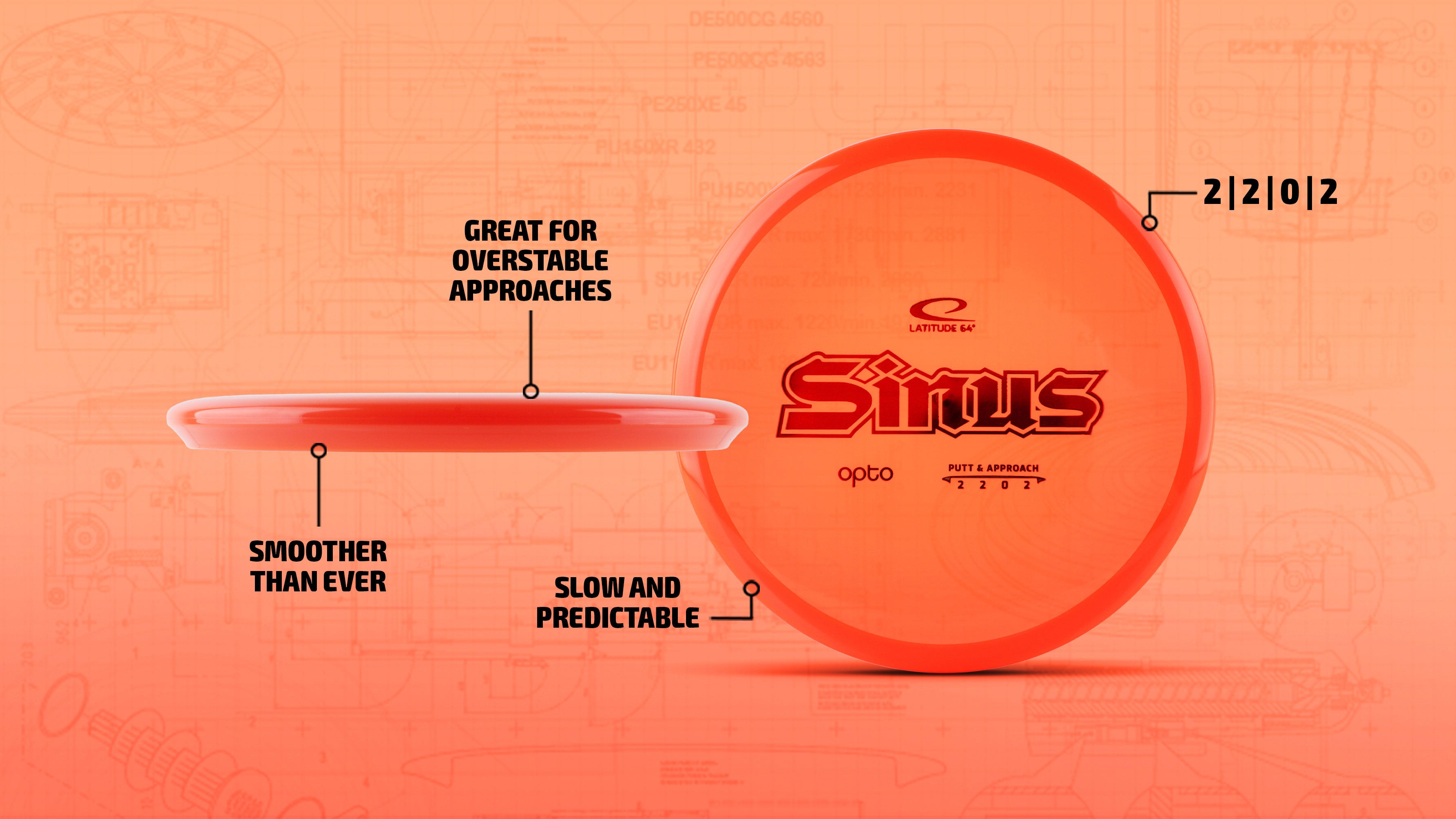 The new Sinus is an approach disc you can count on. Sinus was one of our very first molds back in 2006, here it is redesigned for the future with a smoother feel and even more overstability. Sinus likes to fly slow and predictable. You will love how it will fly straighter and straighter the more you use it.