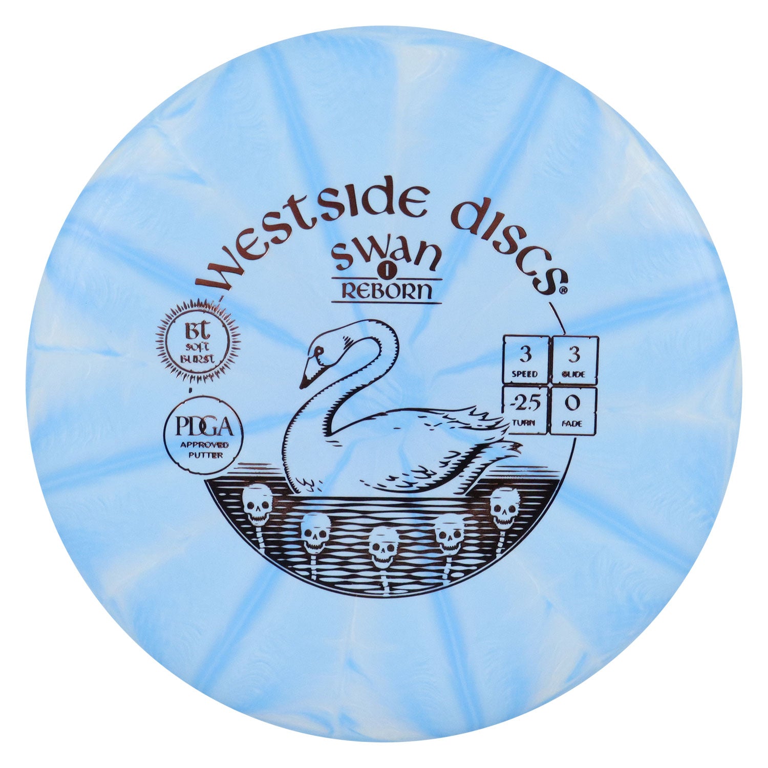 Westside Disc Golf BT Soft Burst Swan 1 Reborn Putter 3/3/-2.5/0 Sky Blue/Bronze 173 grams