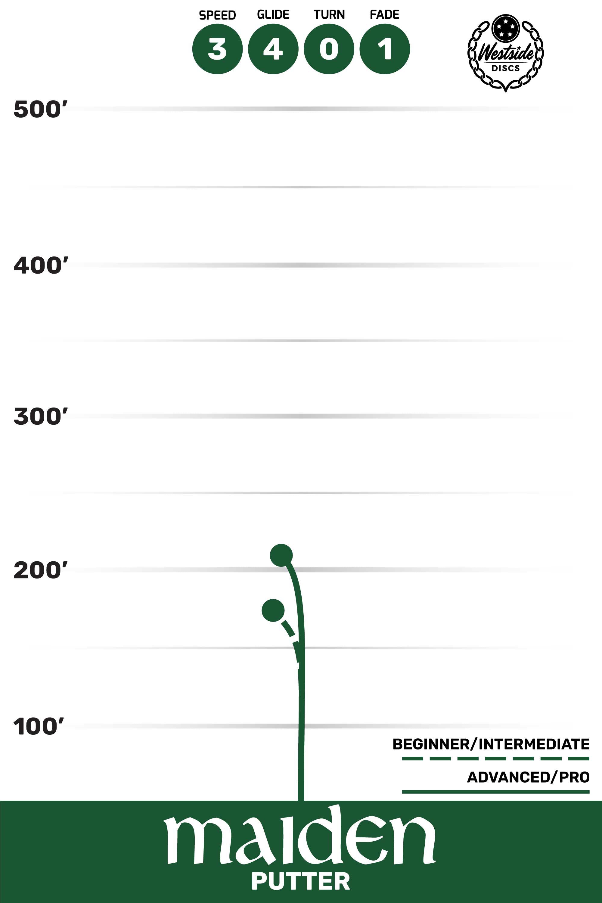 If you're looking for a neutral putter with a thin profile, the Maiden fits the bill. The Maiden is surprisingly resistant to turn with little fade.