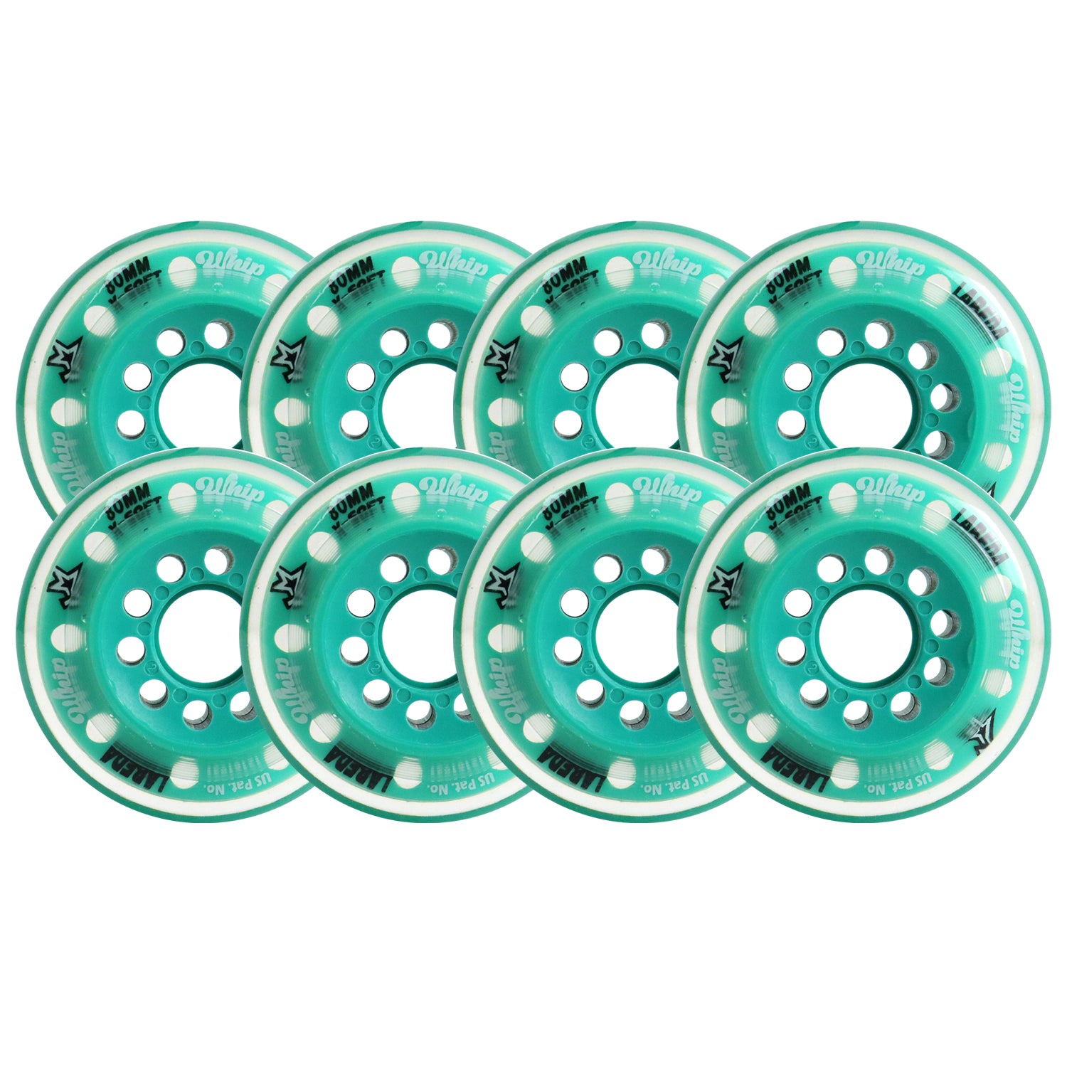 The Teal Labeda Whip is the first real true innovation in wheels since the inception of dual and triple pour wheels. In testing and R&D for over 8 years. It's unique Patent Pending'” EVO core creates a snap back effect that launches you out of every cut and step on the rink. Your wheels have never instantly reacted to your every move, until now.