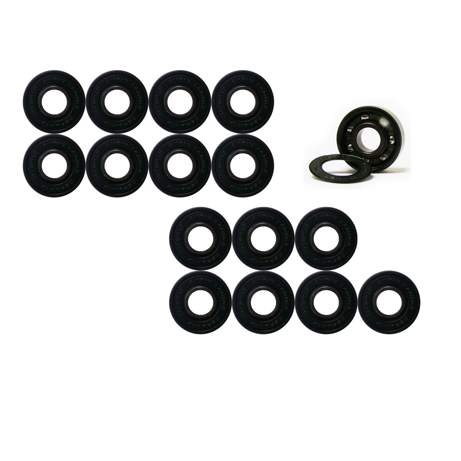 Amp Hybrid Ceramic bearings are like stimulants for your wheels. With this bearing you get the precision of ceramic and the durability of steel balls. The single Ceramic ball cleans debris and cools friction allowing for a longer lasting bearing.