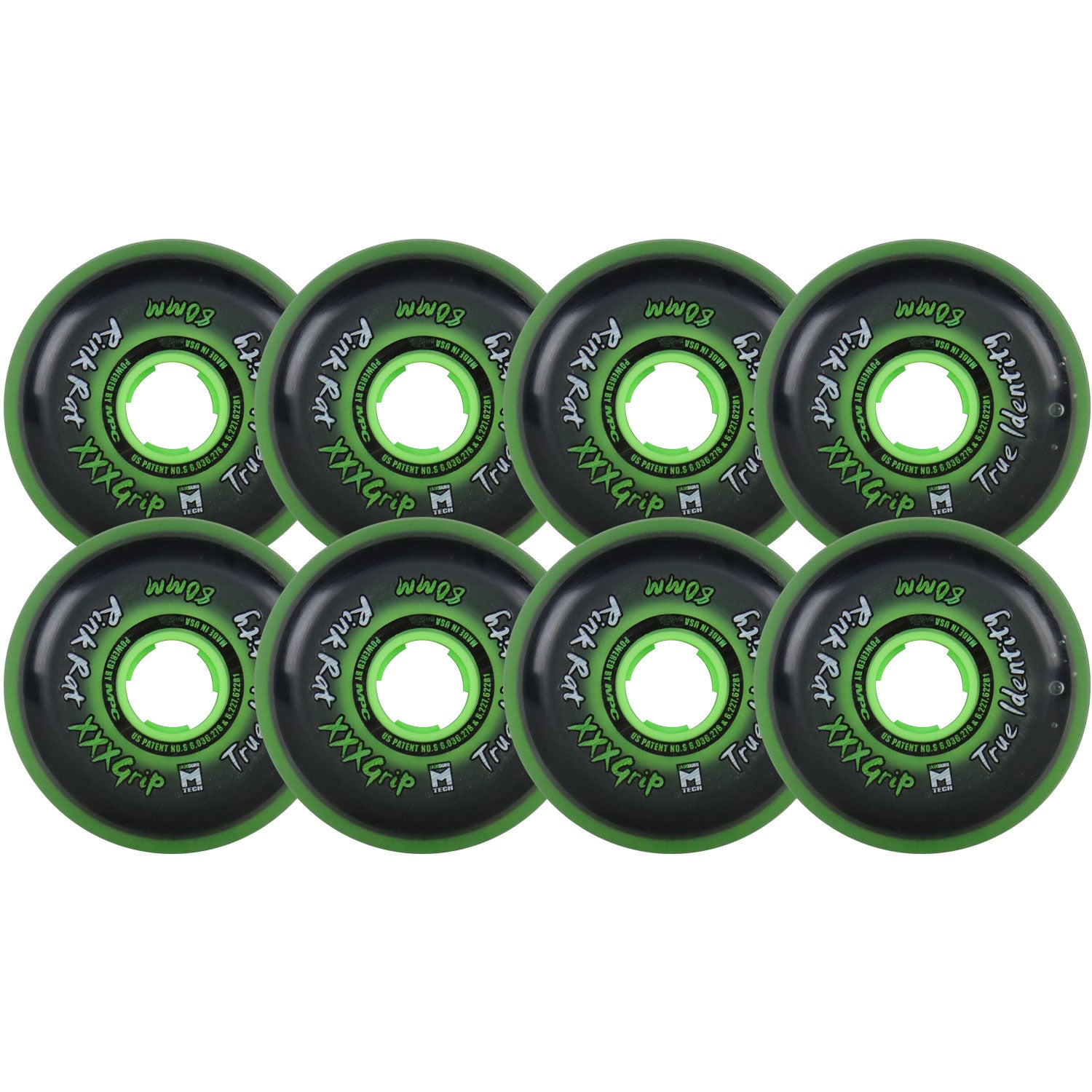 Rink Rat Roller Hockey Wheels - True Identity XXX 80mm 76A Green (8-Pack)