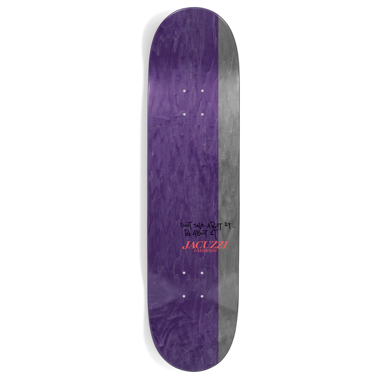 JacuzziUnlimited Skateboard decks are made with 7-ply 100% North American Maple with Epoxy Glue. Individually Pressed. Stronger than industry 7-ply. Strong pop. Long deck life. This board measures 8.5" x 32.325" with a 14.5" wheelbase.