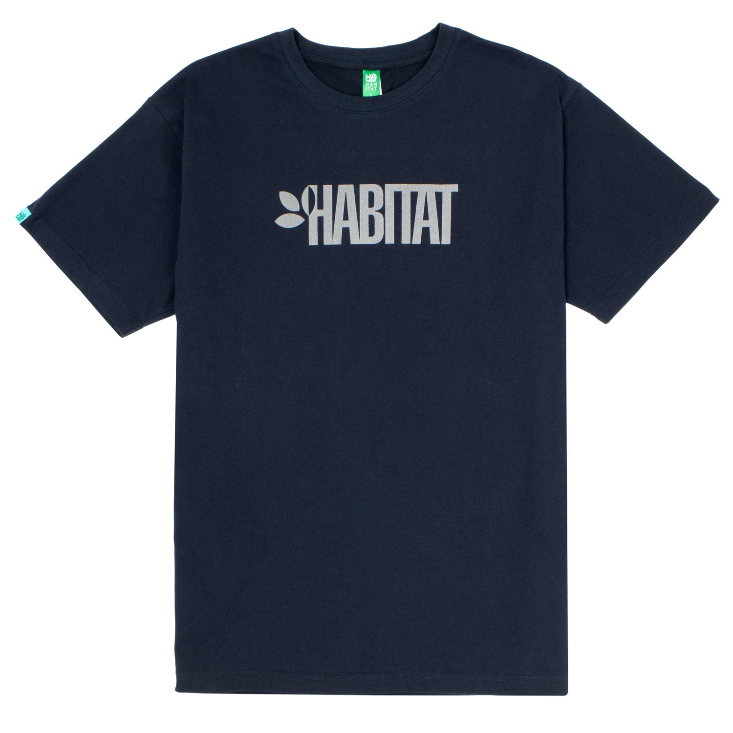 100% cotton t-shirt. Screen printed chest graphic with reflective ink. Screen printed neck label. Water based ink.