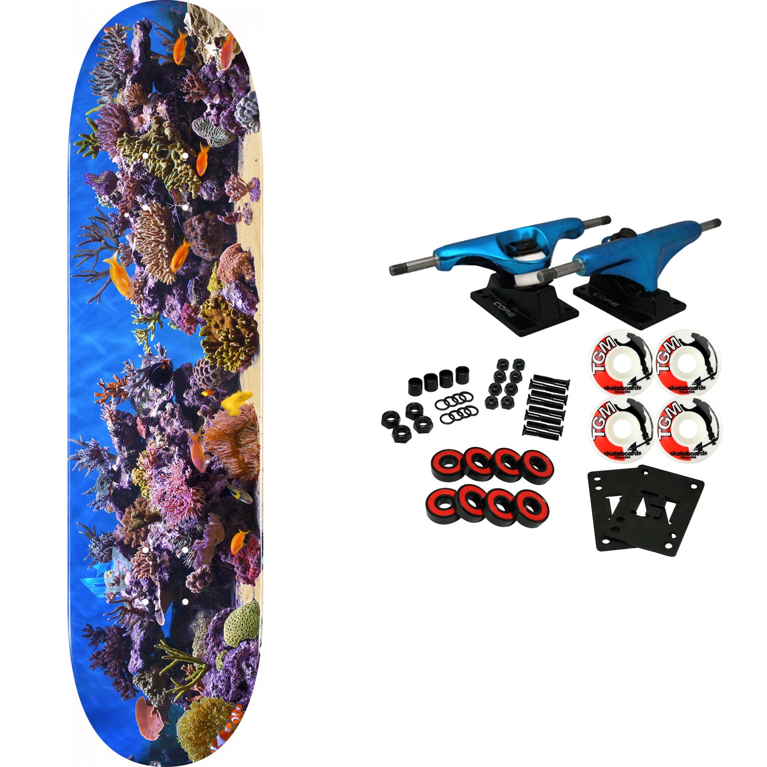 Handmade with the finest materials, Mini Logo is the industry leader of high-performance price point decks. Mini Logo utilizes 35 years of deck-building experience to deliver the best sizes, shapes, and pop at an affordable price. Seven plies of rock hard maple. Laminated with Skate One's proprietary, low-stress AirLam presses. Proven construction and concave. Measures 8.0" x 31.45". Comes with Core trucks, 52mm TGM logo wheels, Amp abec 5 bearings, Black Diamond Griptape, risers, and hardware. Core trucks are light weight and feature heavy duty aluminum with grade 8 steel kingpins and axles, as well as USA made bushings and pivot cups. 52mm 99A are the perfect wheels for both street and park skating. Like the name states, Amp bearings are stimulants for your wheels! Light synthetic oil, Delrin Crowns, and Rubber Serviceable Shields are a few of the things that makes these bearings one of the best Abec 5 rated bearings on the market. Arrives un-assembled which allows for customization and a feeling of accomplishment. Skaters love building their boards! Easy to assemble!