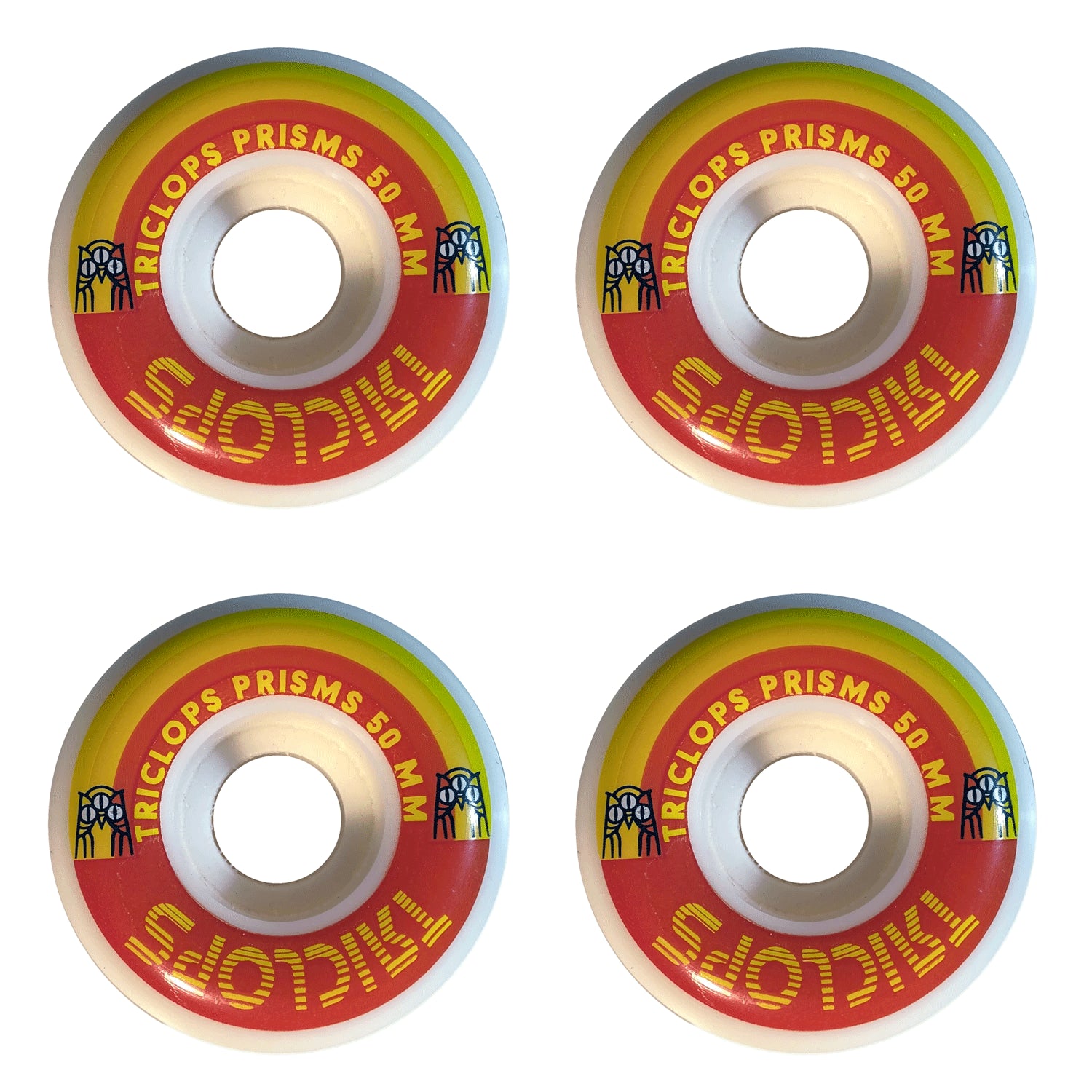 WHEELS: Triclops are a USA made skateboard wheel with a classic shape and premium super high rebound urethane. Perfect for both street and park skating. 50mm 99A.