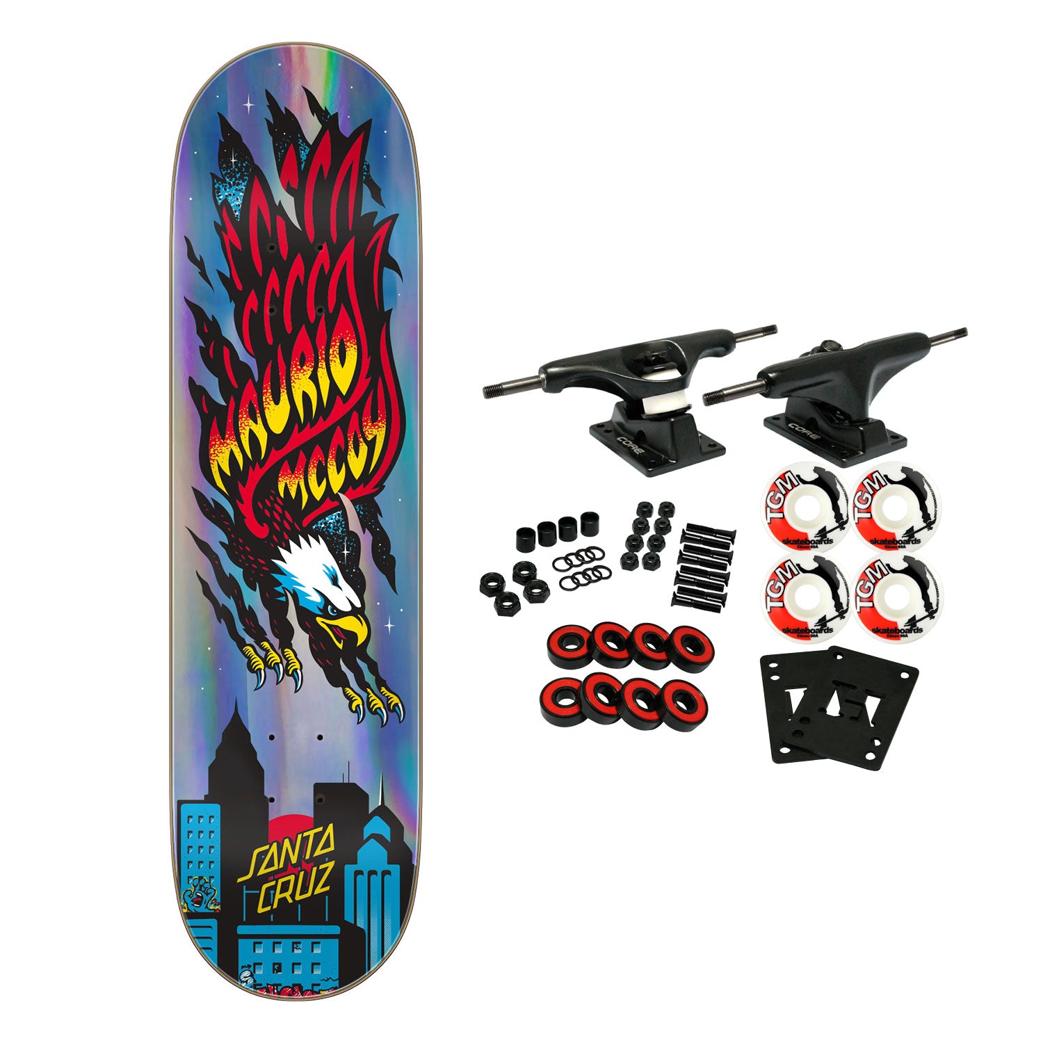 Santa Cruz Skateboards Maurio McCoy Ripping Eagle Pro VX Deck featuring spot gloss and silver rainbow prismatic foil graphics by Falu Carolei on Maurio's custom 8.25" twin shape with 14.22" wheelbase. Comes with Core trucks, 52mm TGM logo wheels, Amp abec 5 bearings, Black Diamond Griptape, risers, and hardware. Core trucks are light weight and feature heavy duty aluminum with grade 8 steel kingpins and axles, as well as USA made bushings and pivot cups. 52mm 99A are the perfect wheels for both street and park skating. Like the name states, Amp bearings are stimulants for your wheels! Light synthetic oil, Delrin Crowns, and Rubber Serviceable Shields are a few of the things that makes these bearings one of the best Abec 5 rated bearings on the market. Arrives un-assembled which allows for customization and a feeling of accomplishment. Skaters love building their boards! Easy to assemble!