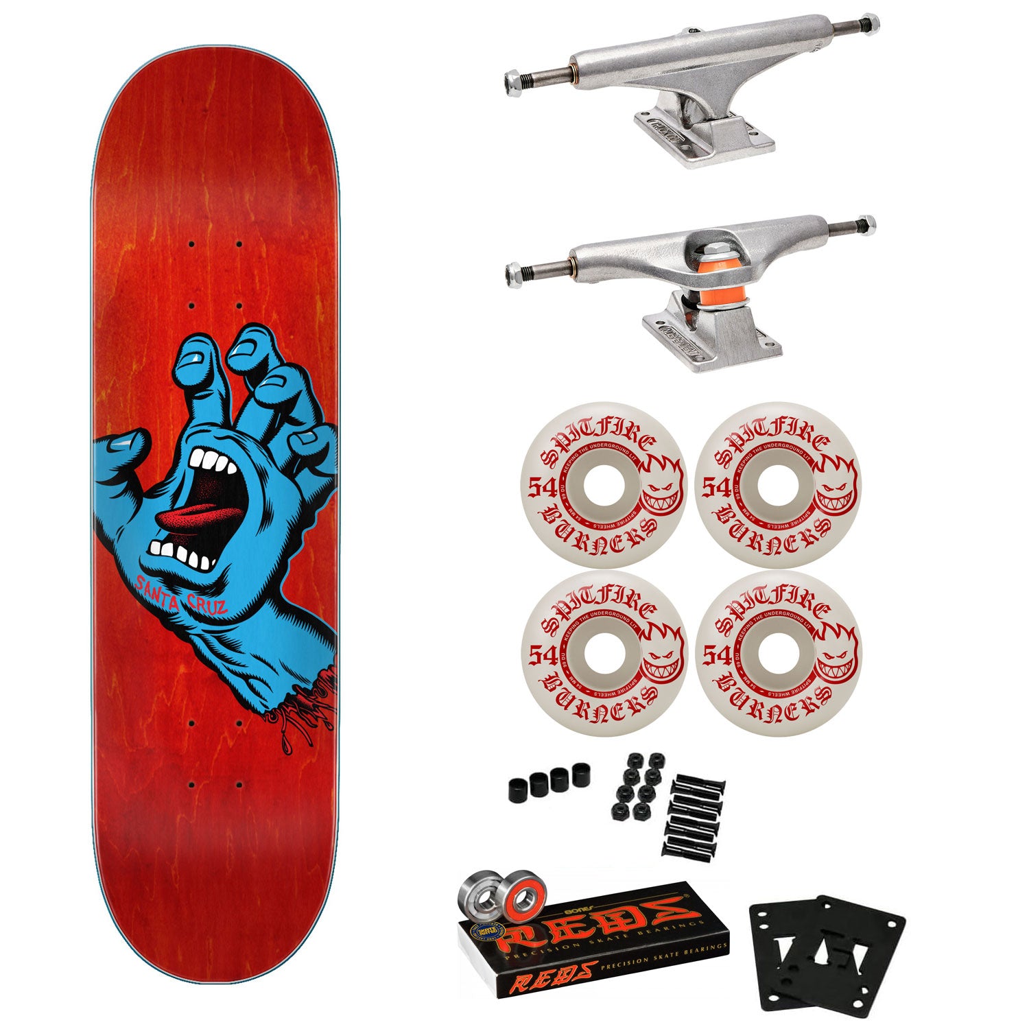Santa Cruz Skateboard Complete Screaming Hand 8.0" Spitfire, Independent, Bones Reds