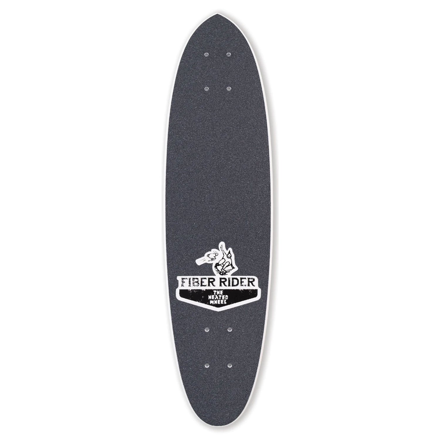 The Fiber Rider deck measures 6.0" x 23.75" with a 13.5" wheelbase and is constructed with laminated resin infused fiberglass. Flat style top with no concave and counter sunk truck holes. The laminate natural flex provides energy to the wheels generating more speed when turning and carving.