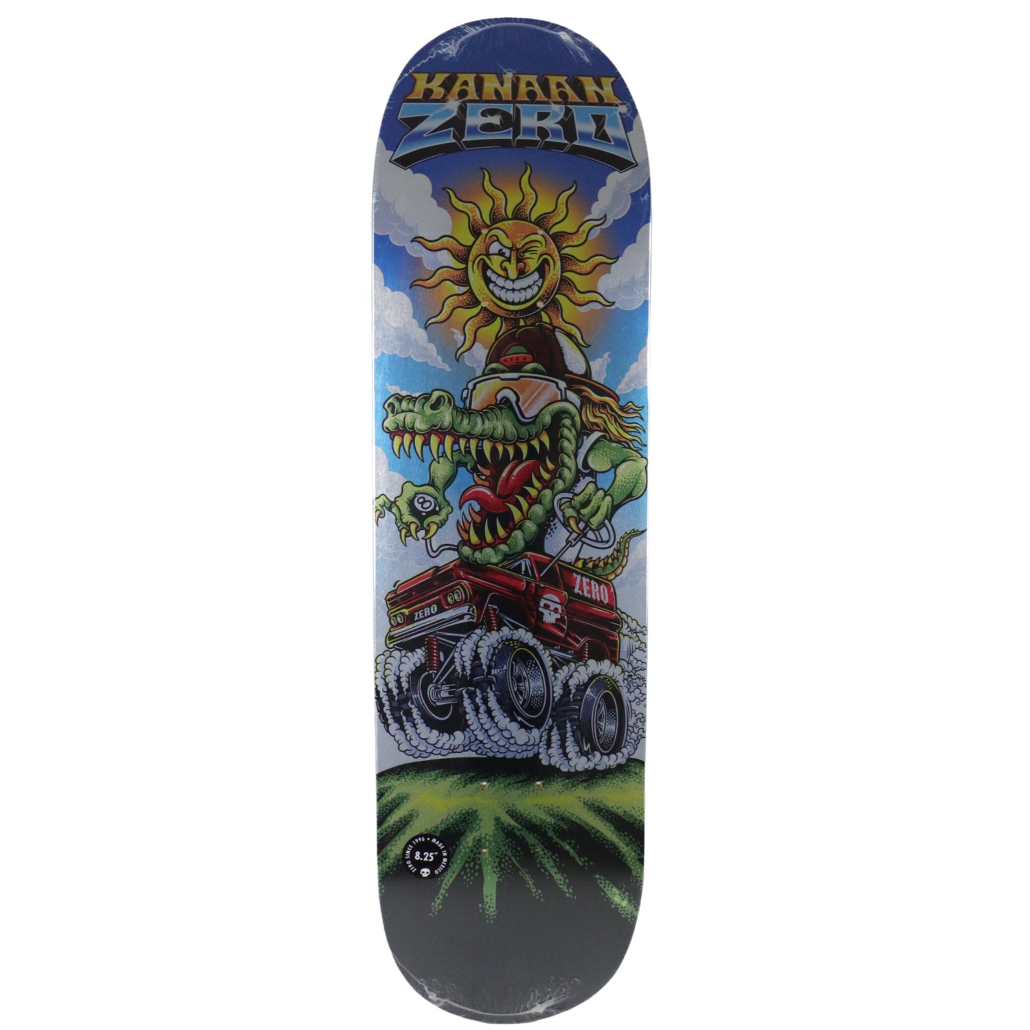 Zero decks are constructed with 7-Ply North American Maple. This board measures 8.25" x 31.9" with a 14.25" wheelbase. Features holographic foil with art by Ramonesketch. Assorted Top Ply.