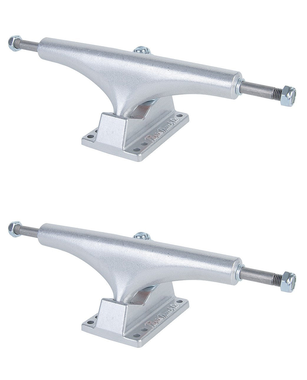 The Paris Street Trucks are made to skate and will take your street, hybrid, or mini-cruiser skateboards to new levels. These trucks are ideal for any board including the smallest mini-cruisers to the largest double kick boards alike. With a taller profile than standard conventional trucks, you will have more clearance and less wheelbite. 356.2 virgin aluminum gravity molded. Secondary heat treatment for added strength & durability. Tall – 57.15 mm axle height for added wheel clearance. Paris 93a urethane bushings. Grade 8 steel axles and branded kingpins. Faced Hangers. 6-hole baseplate.