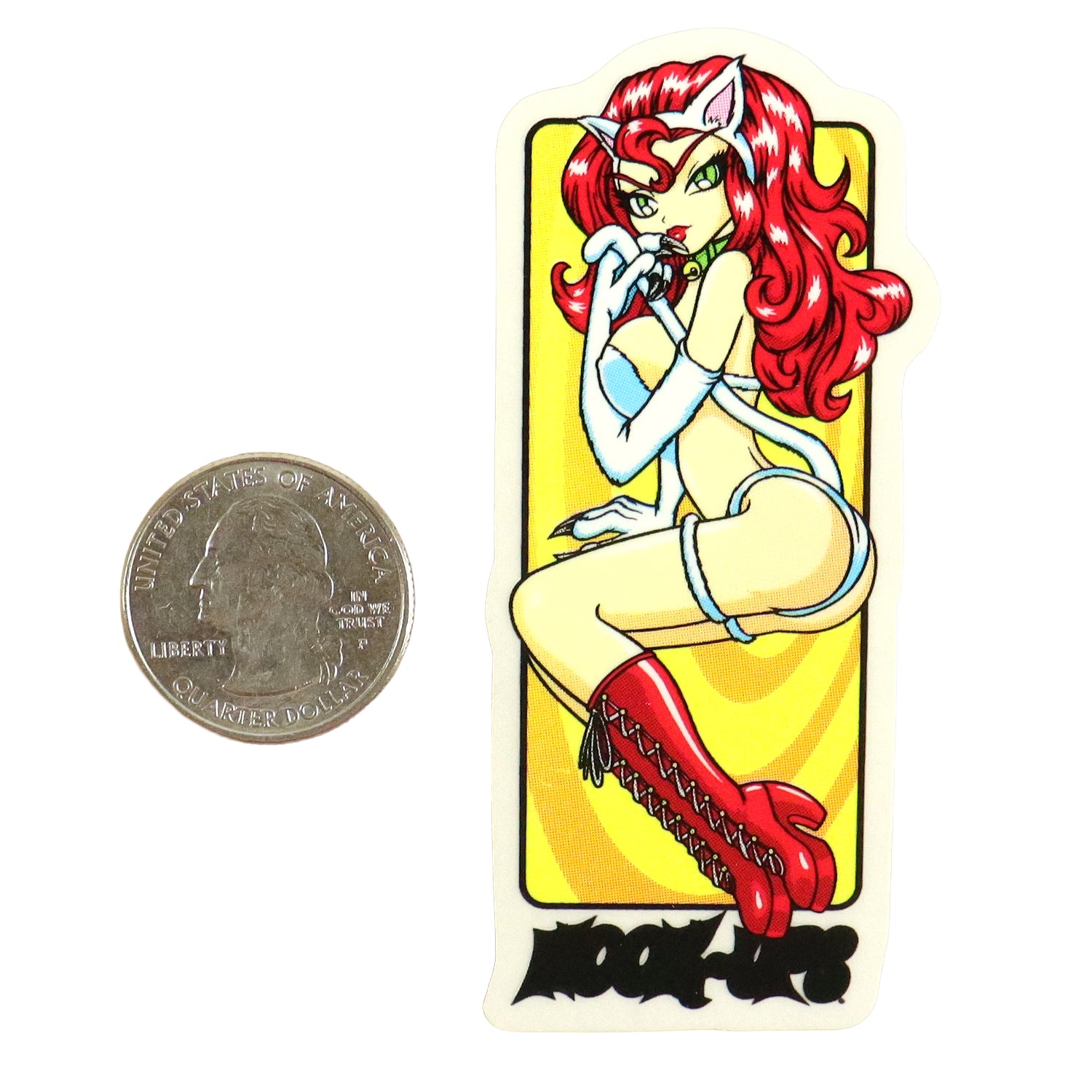 Hook Ups Skateboards Sticker - Mini Size - Akiko Cat Girl 3 1.4" x 3.25"