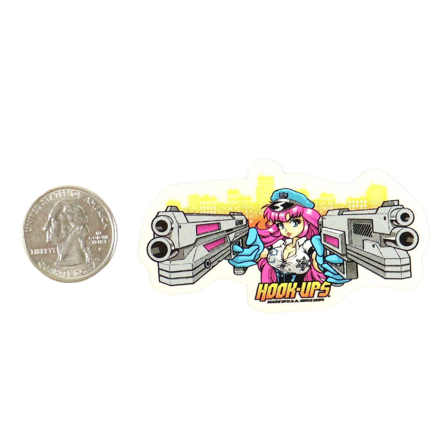 *Please note the size of this sticker* Quarter for scale, NOT INCLUDED. Premium quality mini size sticker from Hook Ups Skateboards. Perfect for phones, dashboards, laptops, etc.