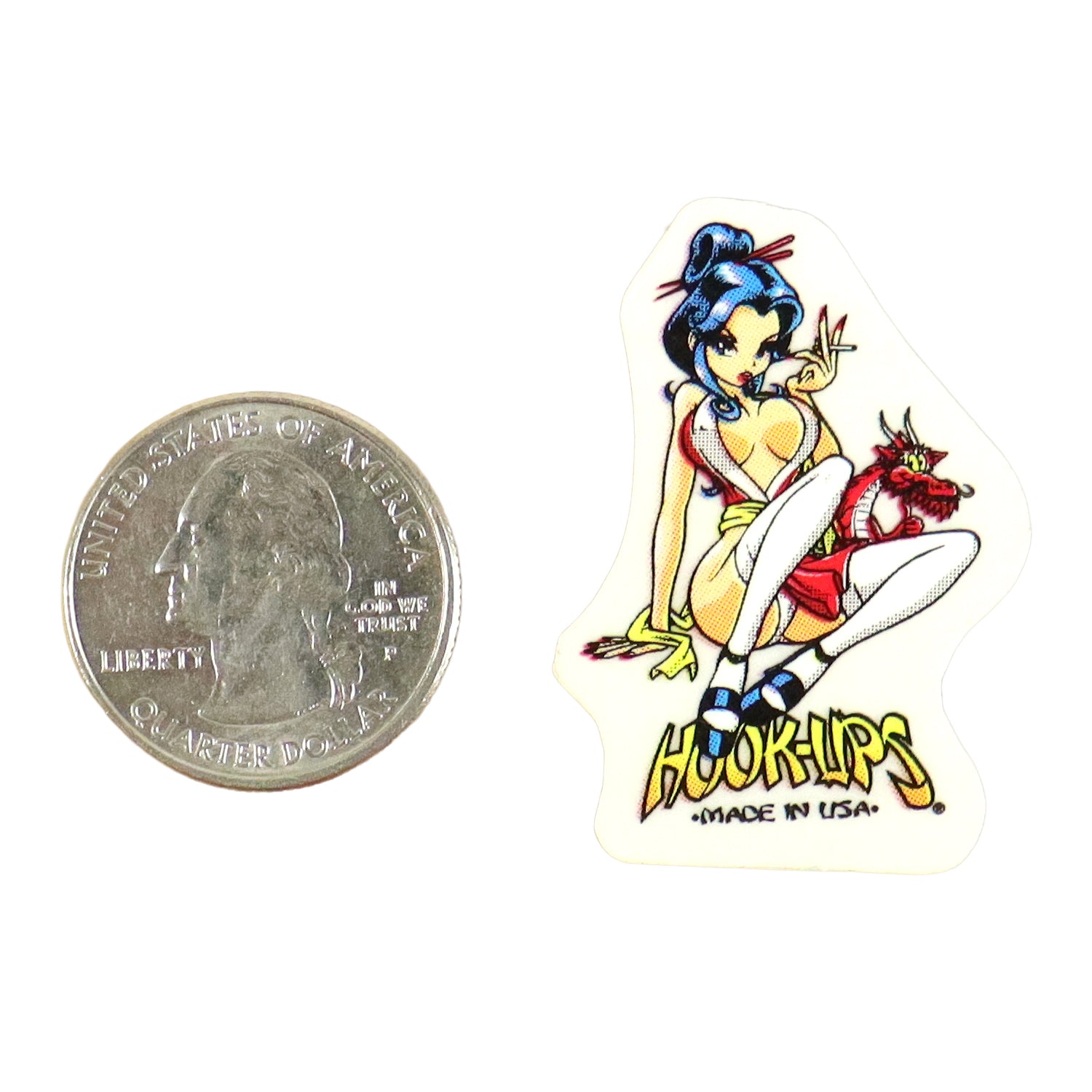 *Please note the size of this sticker* Quarter for scale, NOT INCLUDED. Premium quality mini size sticker from Hook Ups Skateboards. Perfect for phones, dashboards, laptops, etc.