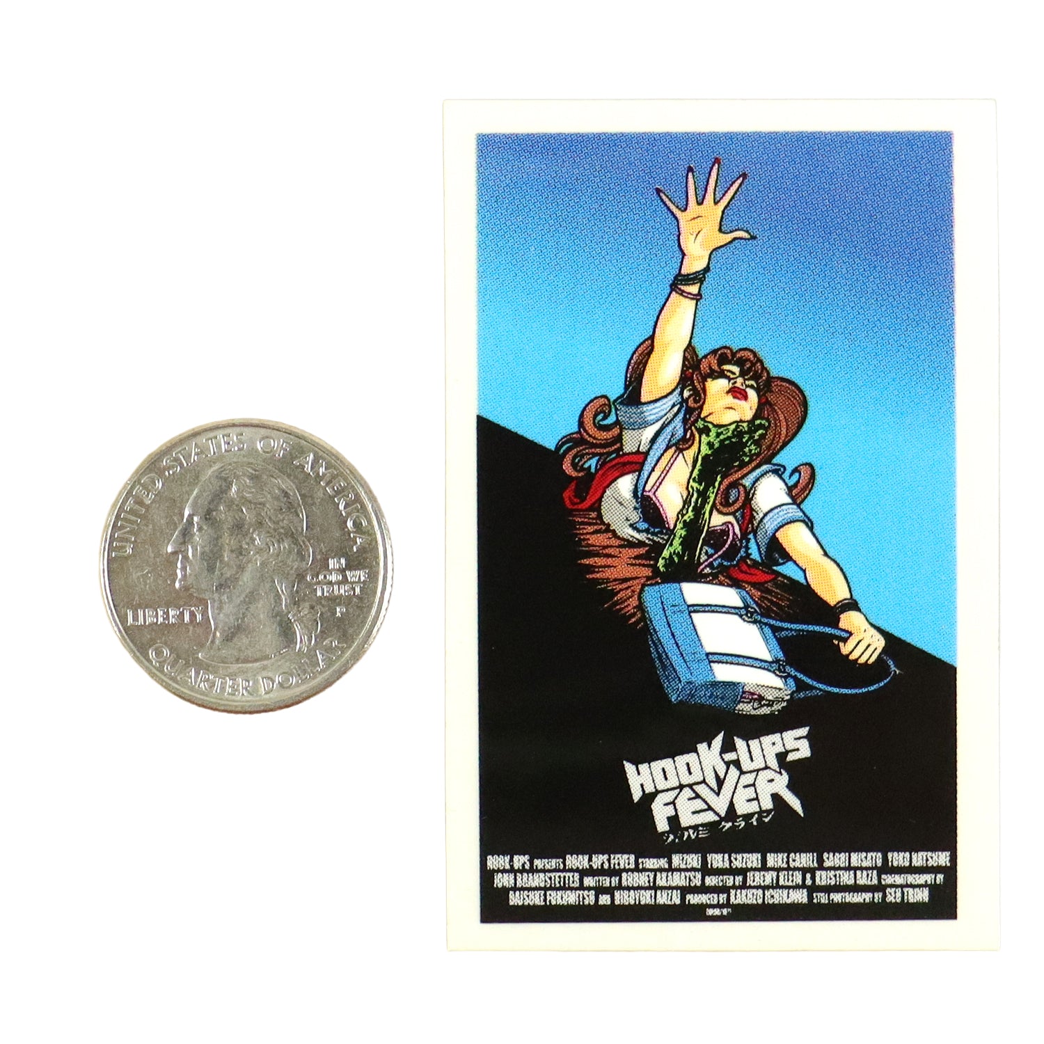 *Please note the size of this sticker* Quarter for scale, NOT INCLUDED. Premium quality mini size sticker from Hook Ups Skateboards. Perfect for phones, dashboards, laptops, etc.
