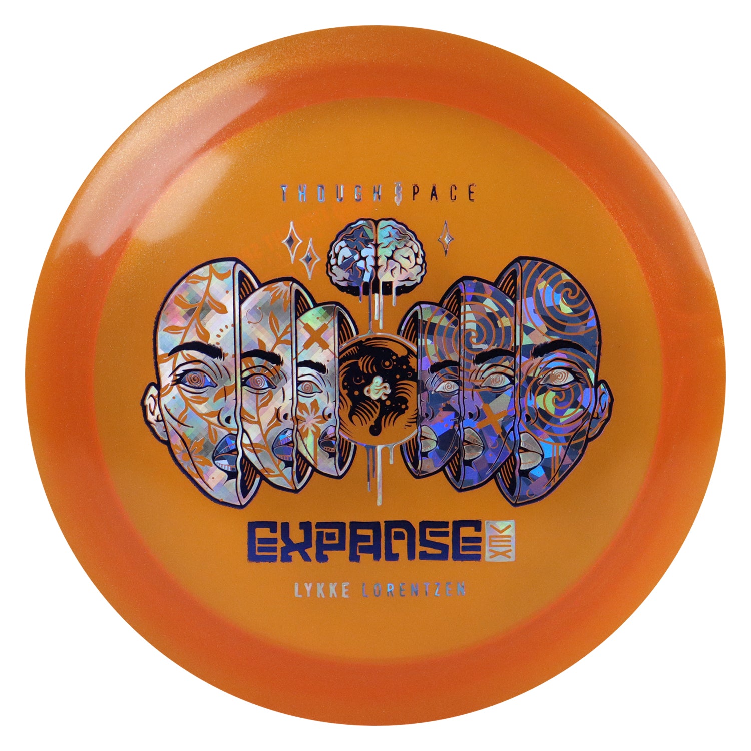 Thought Space Disc Golf Lykke Lorentzen Signature Vex Expanse Distance Driver 11/5/-1/2 Dark Orange/Holo Shapes/Blue Shatter 172 grams