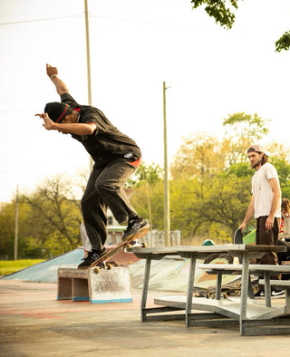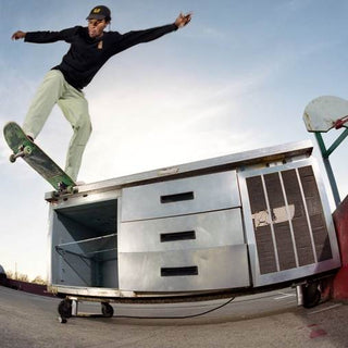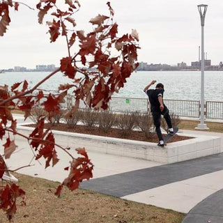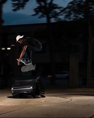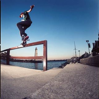 Setup: Right now I’m skating New Balance Numeric Shoes, 8.1-8.3 deck, 149 Thunder Hollow Lights trucks, Bones Bearings, Spitfire Wheels, Mob Griptape, and Shortys Hardware.