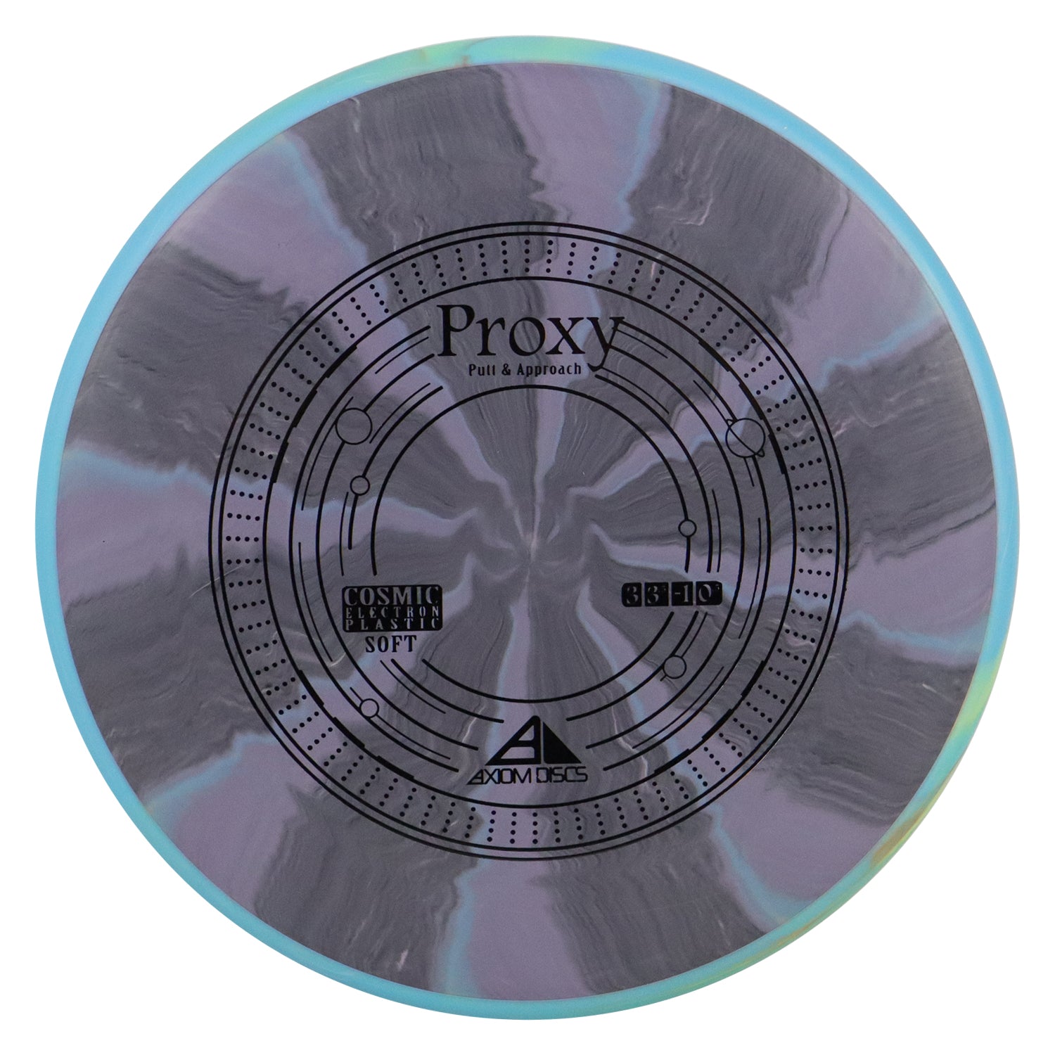 The Proxy shares the Envy mold’s core, lending the same low-profile feel and solid grip, along with a short wing width and wide flight plate diameter for superior glide. The Proxy sets itself apart from the Envy with a remarkably straight forward-fading finish. A bit of high-speed turn potential allows the Proxy’s lines to be manipulated over a broad range of power and helps less powerful throwers achieve straight putter drives. Premium color enhanced Electron blend. Plethora of bright color swirls. We strove to reinvent baseline with our innovative Electron plastic. This ultra-grippy all-weather material will wear its battle scars with pride and fly straighter with each hit. While retaining the GYRO effect for superb line-holding, the matte texture of Electron produces exceptional grip for confident putting and throwing. Although a premium disc twice-molded with precise blends can hardly be considered base, Electron is most similar to chalky baseline putter blends on the market. Electron comes in a regular, Soft, and Firm variations to help you find that perfect feel and grip you can trust.
