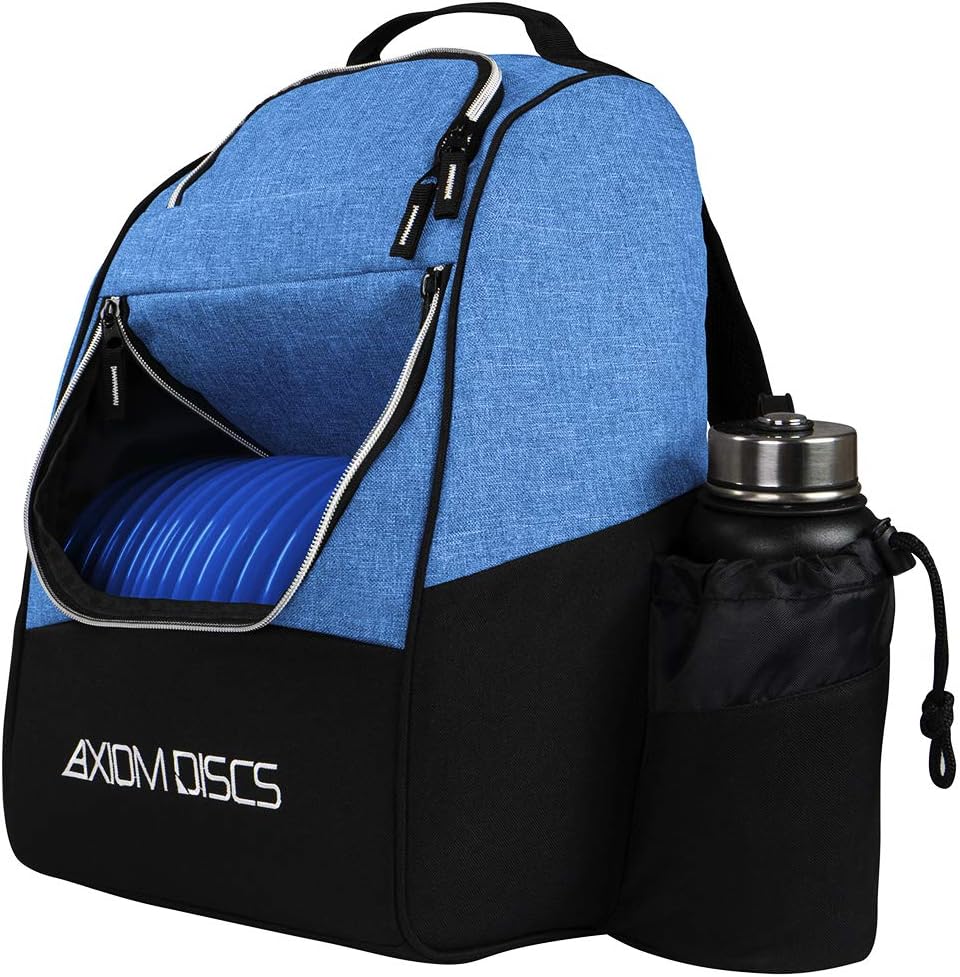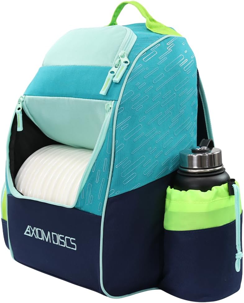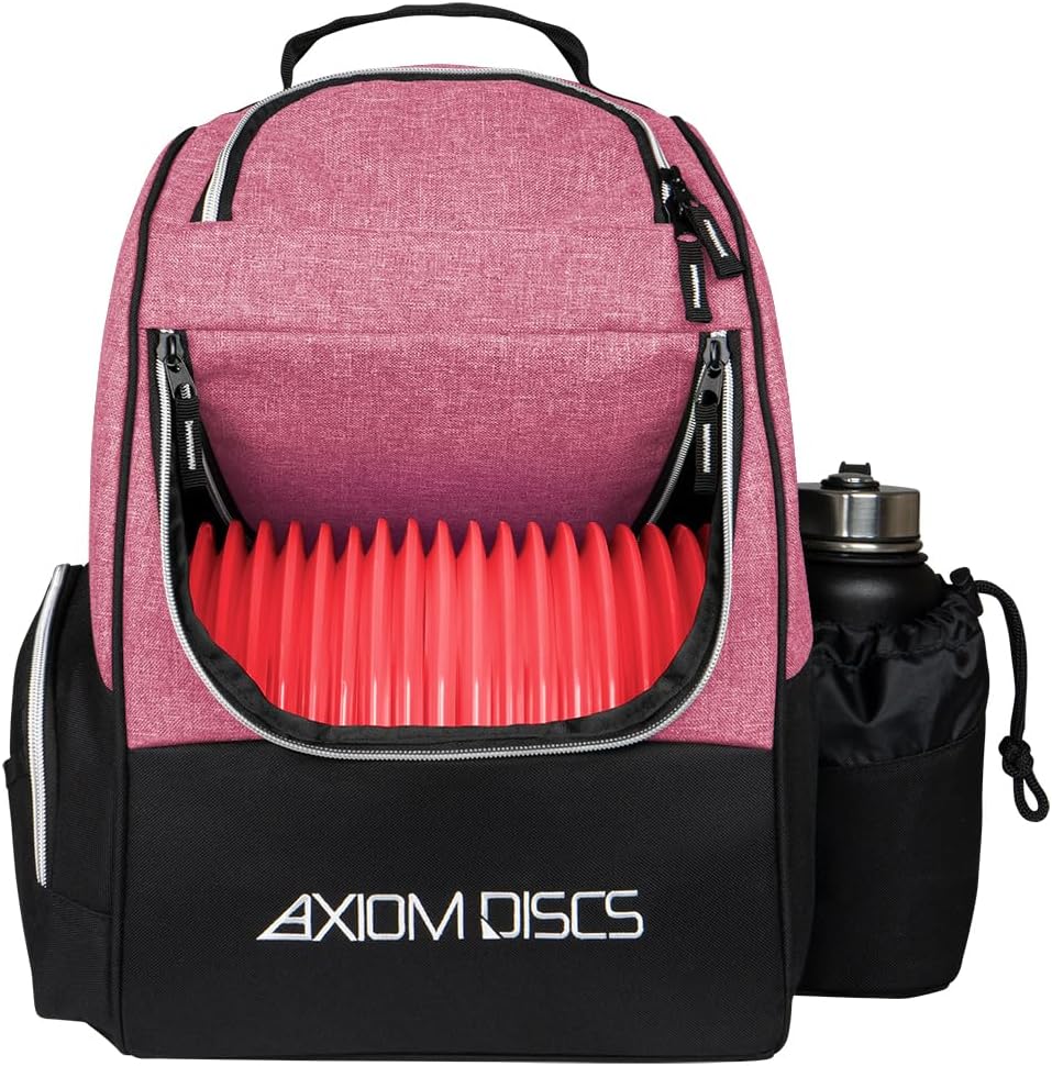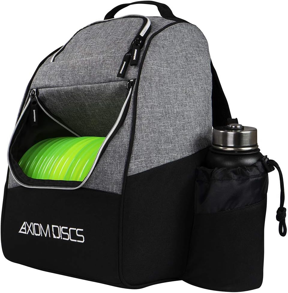 The Axiom Shuttle Bag is perfect for quick rounds or making the move to a backpack style bag to expand your options out on course, and a perfect complement to the wildly popular MVP Shuttle. The main compartment is designed to hold 12-16 discs, the side pocket is capable of holding up to 4 discs, and the top pocket is able to hold 2 discs and your accessories, or up to 6 additional discs. The Axiom Shuttle Bag also has a side panel pocket, larger side pocket storage, a standard large drink holder, and adjustable padded straps for comfortable wear for players of all sizes. Features: Huge 18-24 Disc Capacity, Upper Pocket for More Discs or Accessories, Side Panel Pockets for Additional Storage, Lightweight and Durable Materials, Adjustable Padded Shoulder Straps, Embroidered Axiom and Icon Logo. Does NOT include discs or watter bottle.