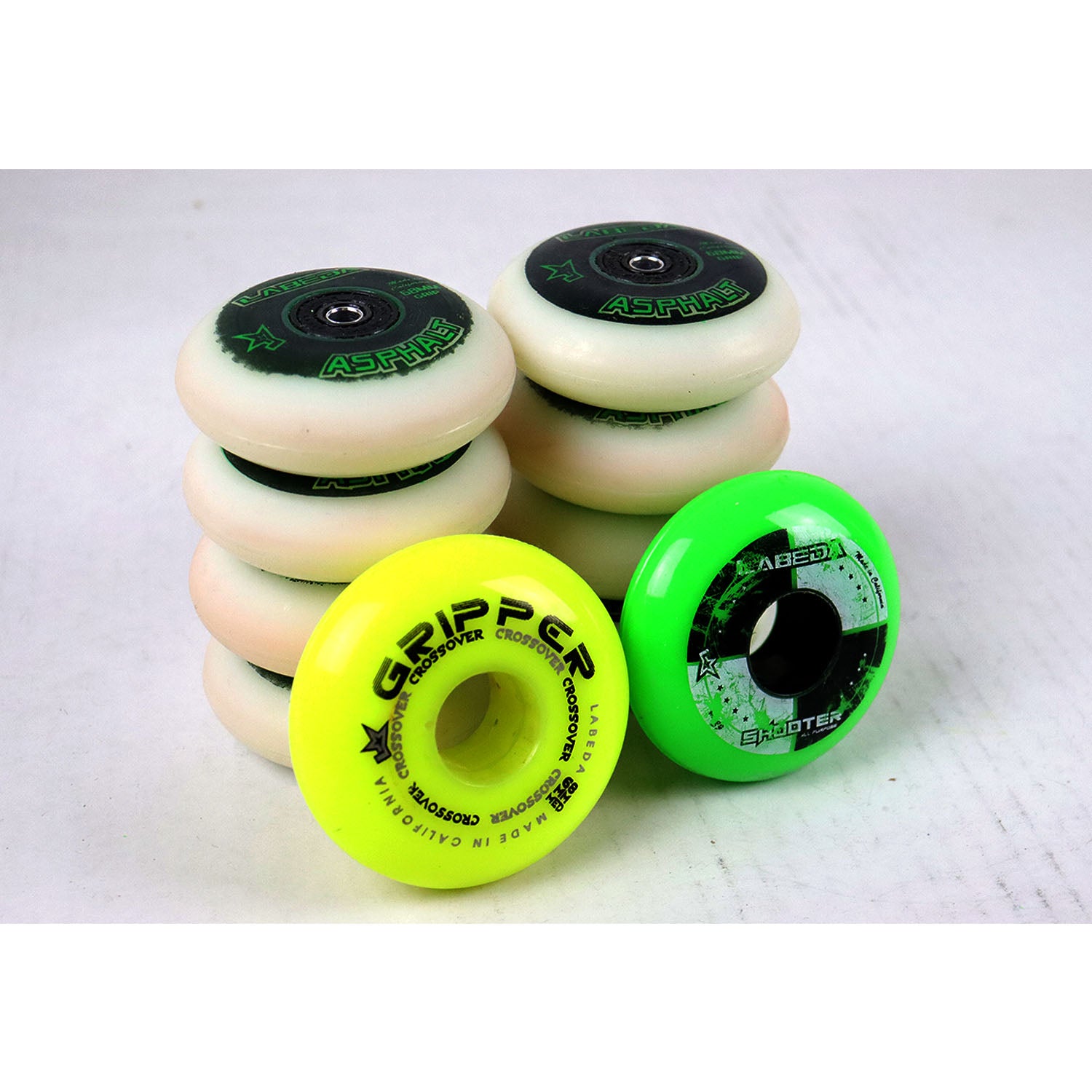 Includes 8 used 68mm asphalt wheels and a shooter and gripper standard wheel. Asphalts are used and returned with life left. Shooter and crossover wheel are cosmetic blem.