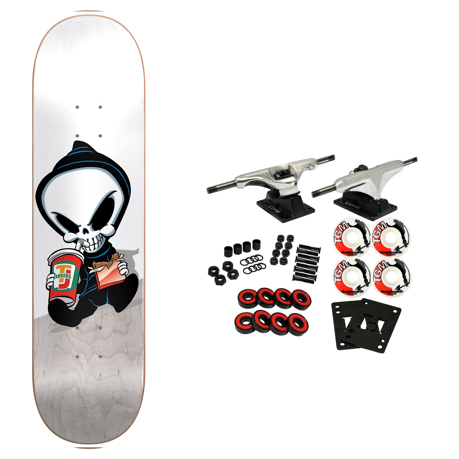 7-ply 100% North America Maple with Epoxy Resin Glue. Individually Pressed, Stronger than industry standard 7-ply. Measures 8.375" x 32.2" with a 14.25" wheelbase and Full Concave. Comes with Core trucks, 52mm TGM logo wheels, Amp abec 5 bearings, Black Diamond Griptape, risers, and hardware. Core trucks are light weight and feature heavy duty aluminum with grade 8 steel kingpins and axles, as well as USA made bushings and pivot cups. 52mm 99A are the perfect wheels for both street and park skating. Like the name states, Amp bearings are stimulants for your wheels! Light synthetic oil, Delrin Crowns, and Rubber Serviceable Shields are a few of the things that makes these bearings one of the best Abec 5 rated bearings on the market. Arrives un-assembled which allows for customization and a feeling of accomplishment. Skaters love building their boards! Easy to assemble!