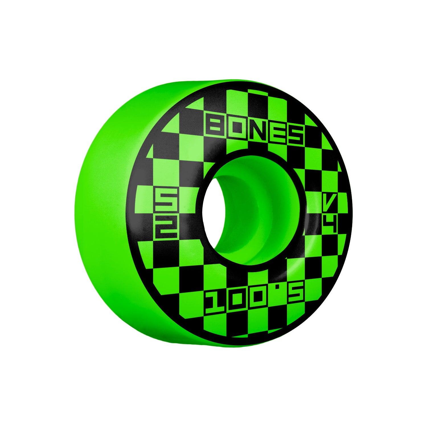 Bones Skateboard Wheels 100's 52mm 100A Block Party Green V4 Wide Shape