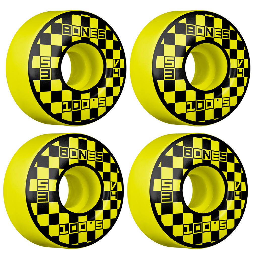 Bones Skateboard Wheels 100's 53mm 100A Block Party Yellow V4 Wide Shape