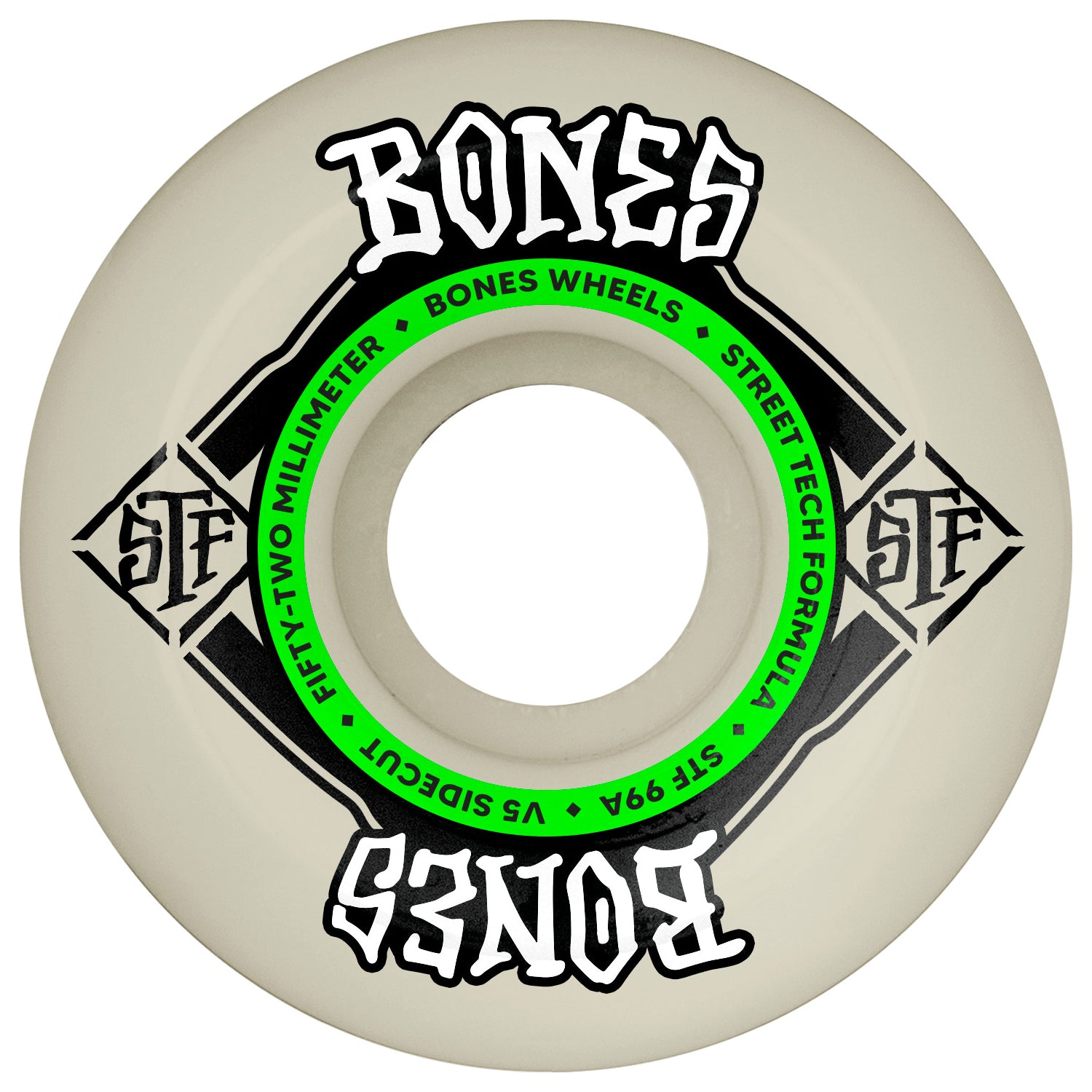 In 2005, Bones introduced STF wheels and changed the game. Offering a new formula for the generation, they forced wheel brands to look for ways to improve their offerings. STF is known as the wheel that rolls fast, grips when needed, and slides when you want, providing more confidence without flat spotting. Outperforming and lasting several times longer than most other wheels in the same tier. Made in the USA.
