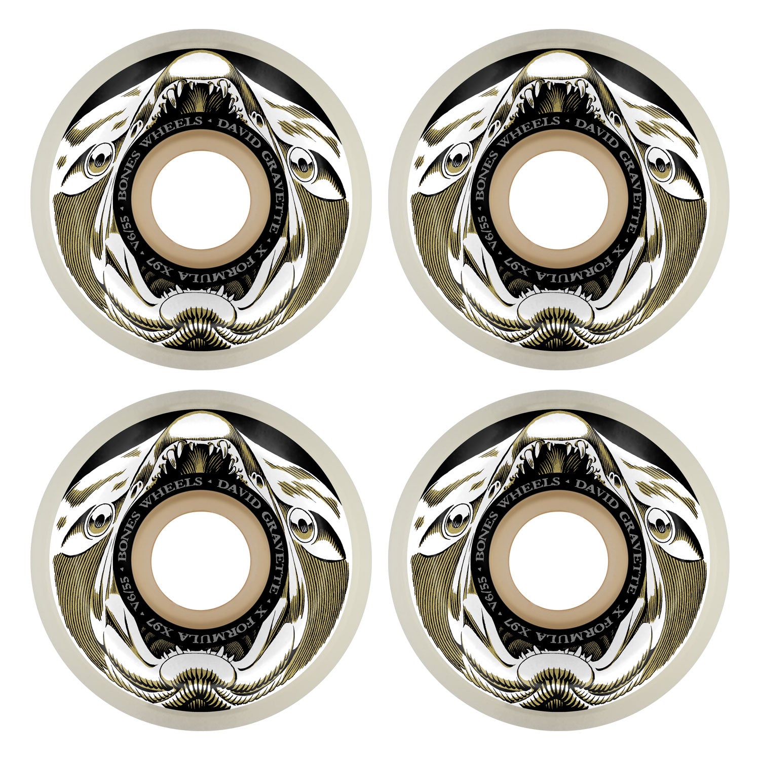 Bones Skateboard Wheels 55mm X-Formula 97A V6 Widecut Gravette Salmon Illa White