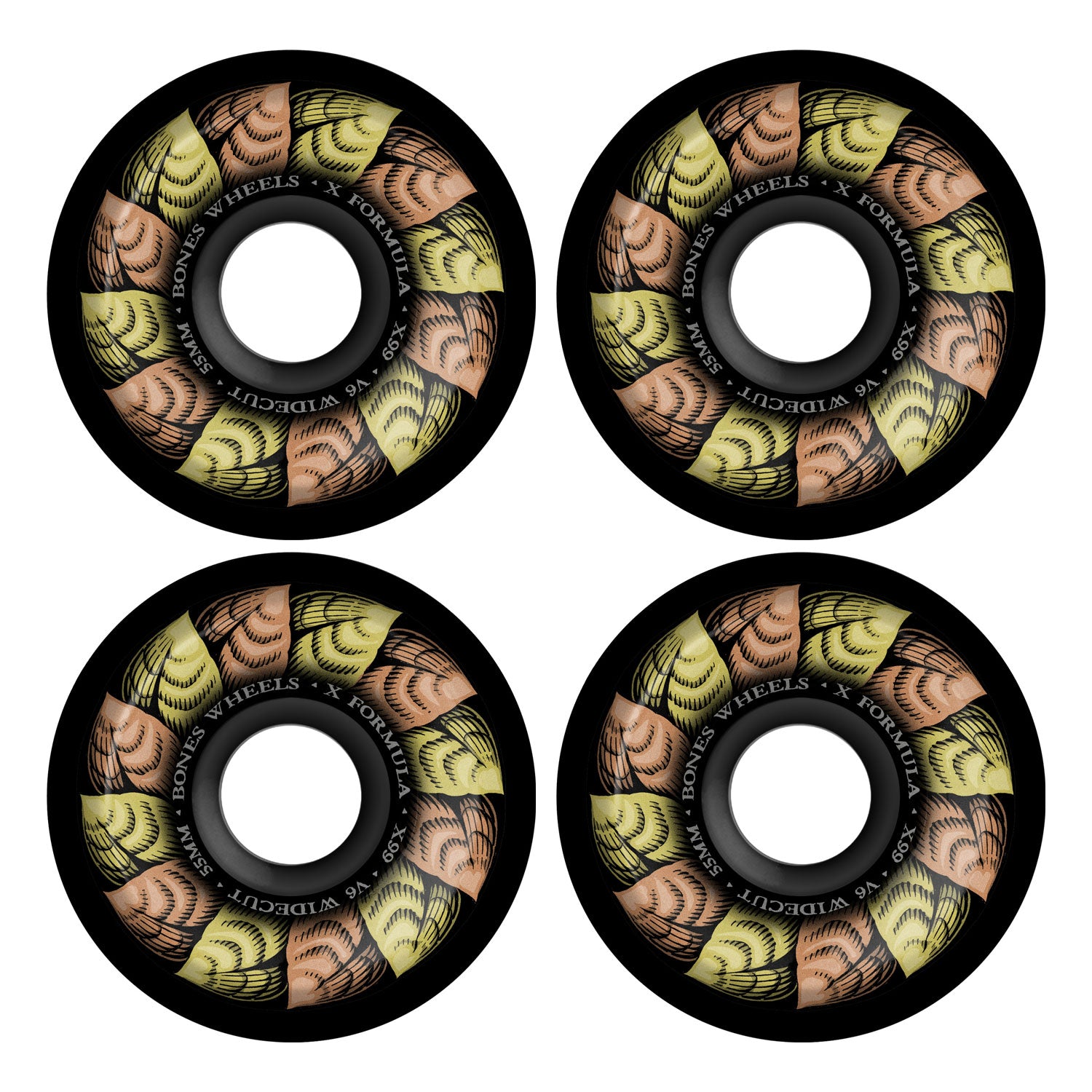 Bones Skateboard Wheels 55mm X-Formula 99A V6 Widecut Leaving Black