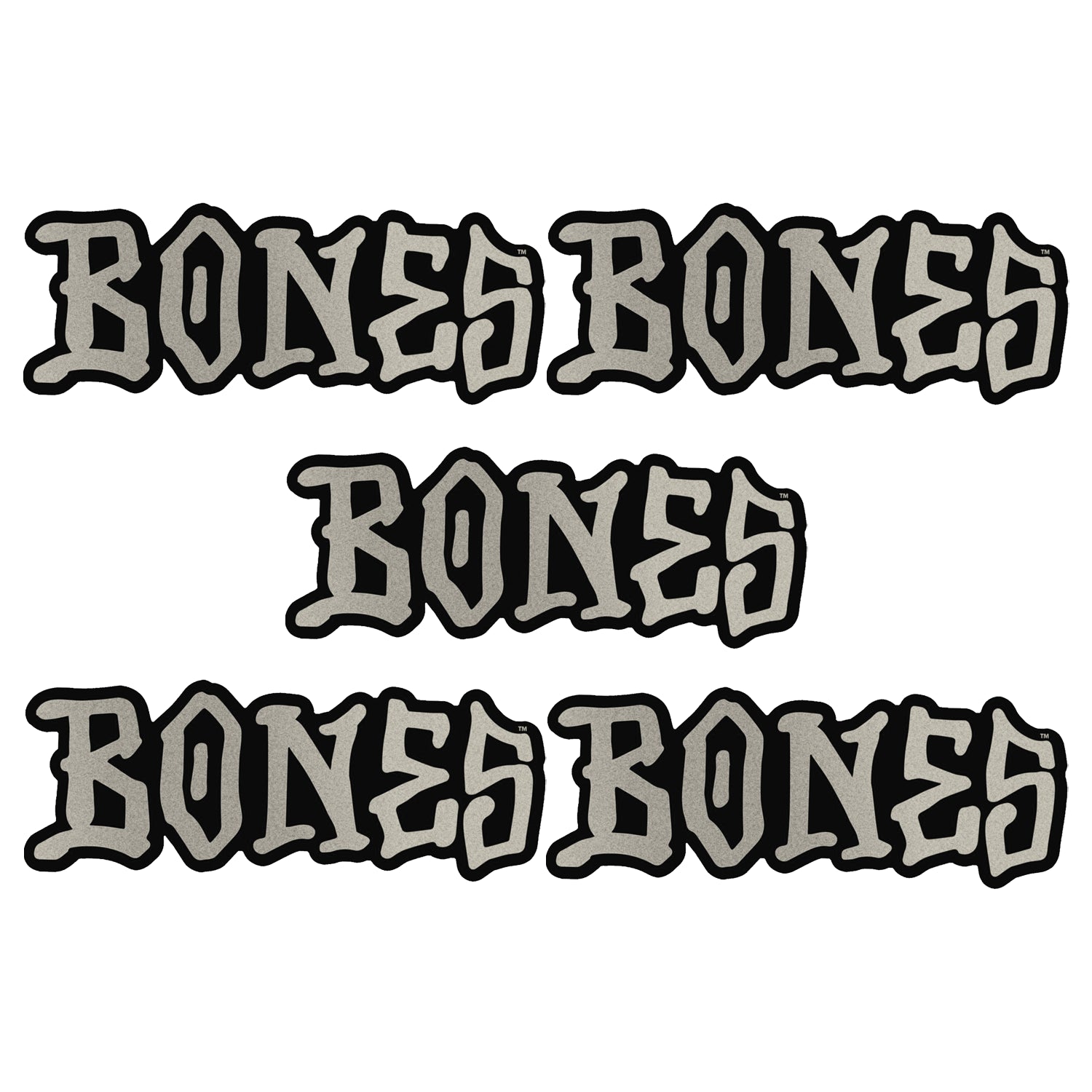 Bones Wheels Skateboard Sticker Logo Black/Chrome 7" x 2.5" 5-Pack