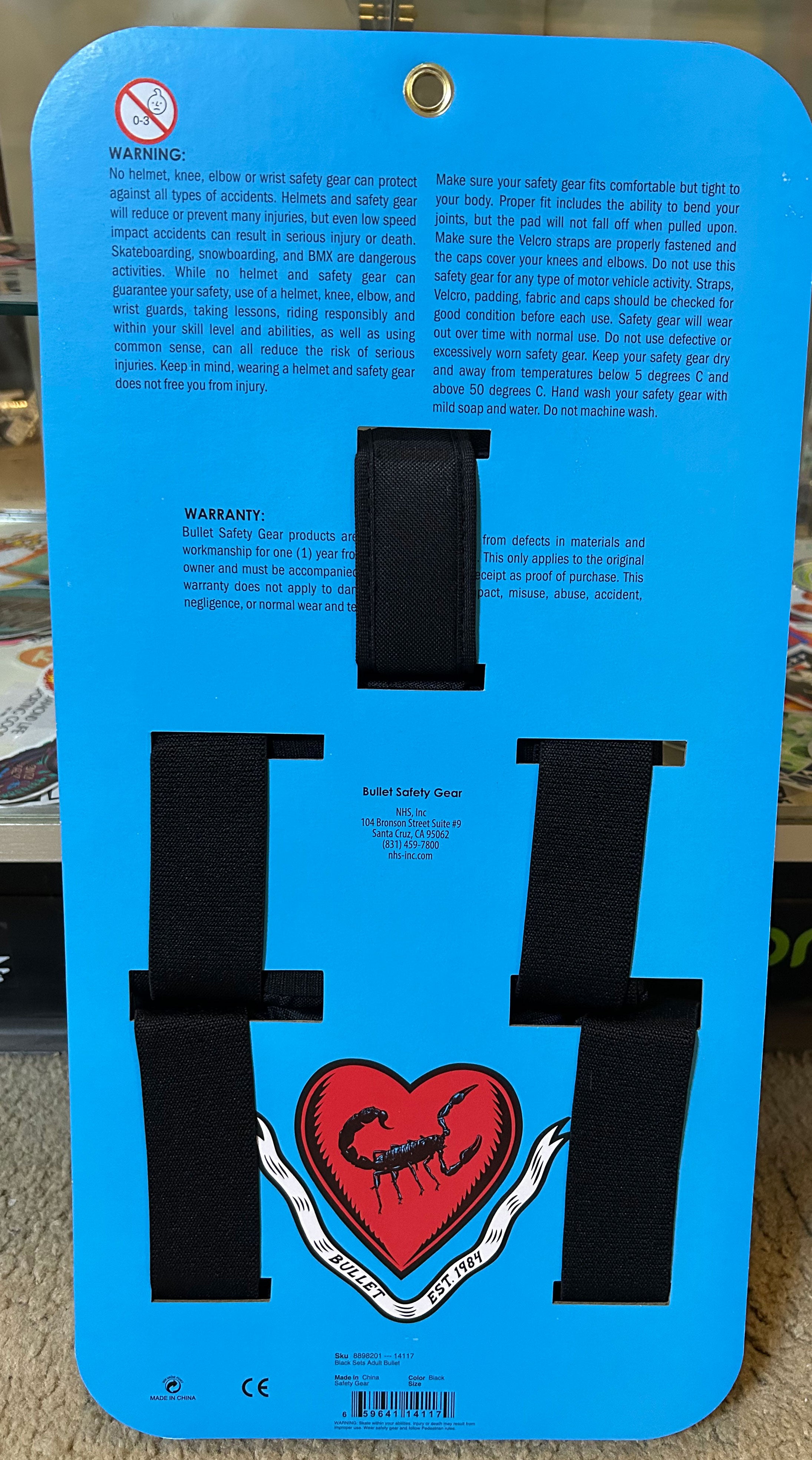 The Adult Safety Set from Bullet comes with adult sized knee pads, wrist guards, and elbow pads. These Bullet knee and elbow pads are constructed with a tough cordura, a comfortable neoprene backing, and durable plastic caps. Pad Sets include knee and elbow pads plus wrist guards.