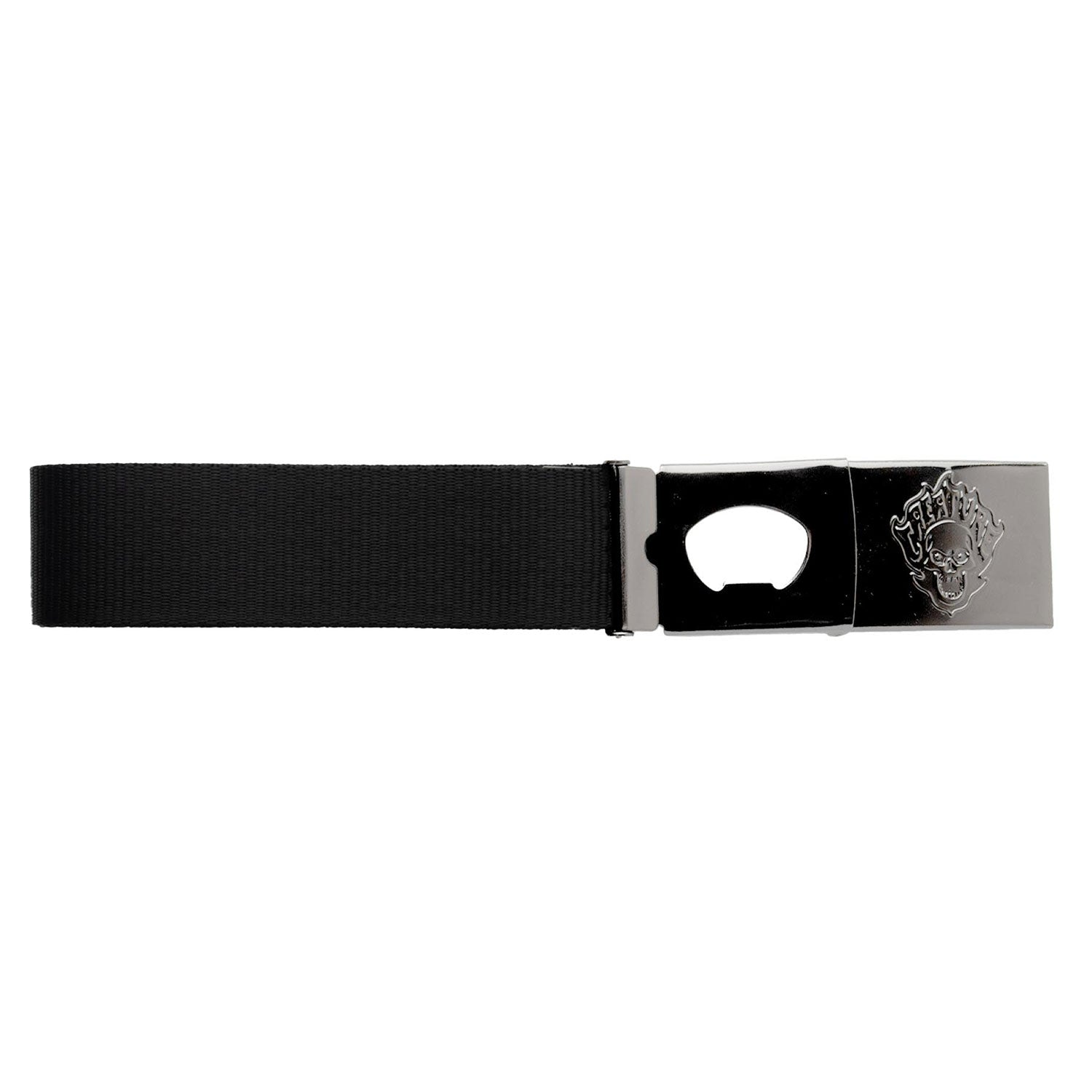 Keep it Creach' in the latest apparel and accessories from Creature Skateboards. The Creature Bonehead Flame web belt features embossed Bone Head Flame logo, Creature logo etched on belt end and bottle opener on the buckle.