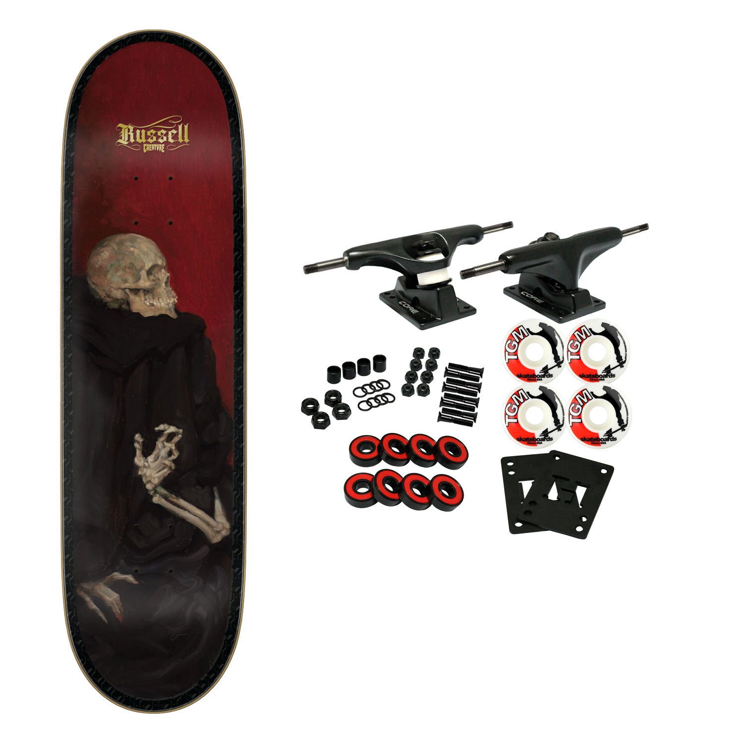 A morbid oil-based image of death with a raised ink-textured border gives this relic a modern twist and enhanced grip. Art by Batdog. 7 ply North American Maple pressed individually using epoxy - making a strong, responsive deck with long lasting pop and consistent concave and kick. ATV is a universal medium-depth concave with symmetrical nose and tail kick that performs well in all terrains on a wide variety of shapes - for anybody, anywhere. Measures 8.60" x 31.95" with a 14.25" wheelbase. Comes with Core trucks, 52mm TGM logo wheels, Amp abec 5 bearings, Black Diamond Griptape, risers, and hardware. Core trucks are light weight and feature heavy duty aluminum with grade 8 steel kingpins and axles, as well as USA made bushings and pivot cups. 52mm 99A are the perfect wheels for both street and park skating. Like the name states, Amp bearings are stimulants for your wheels! Light synthetic oil, Delrin Crowns, and Rubber Serviceable Shields are a few of the things that makes these bearings one of the best Abec 5 rated bearings on the market. Arrives un-assembled which allows for customization and a feeling of accomplishment. Skaters love building their boards! Easy to assemble!