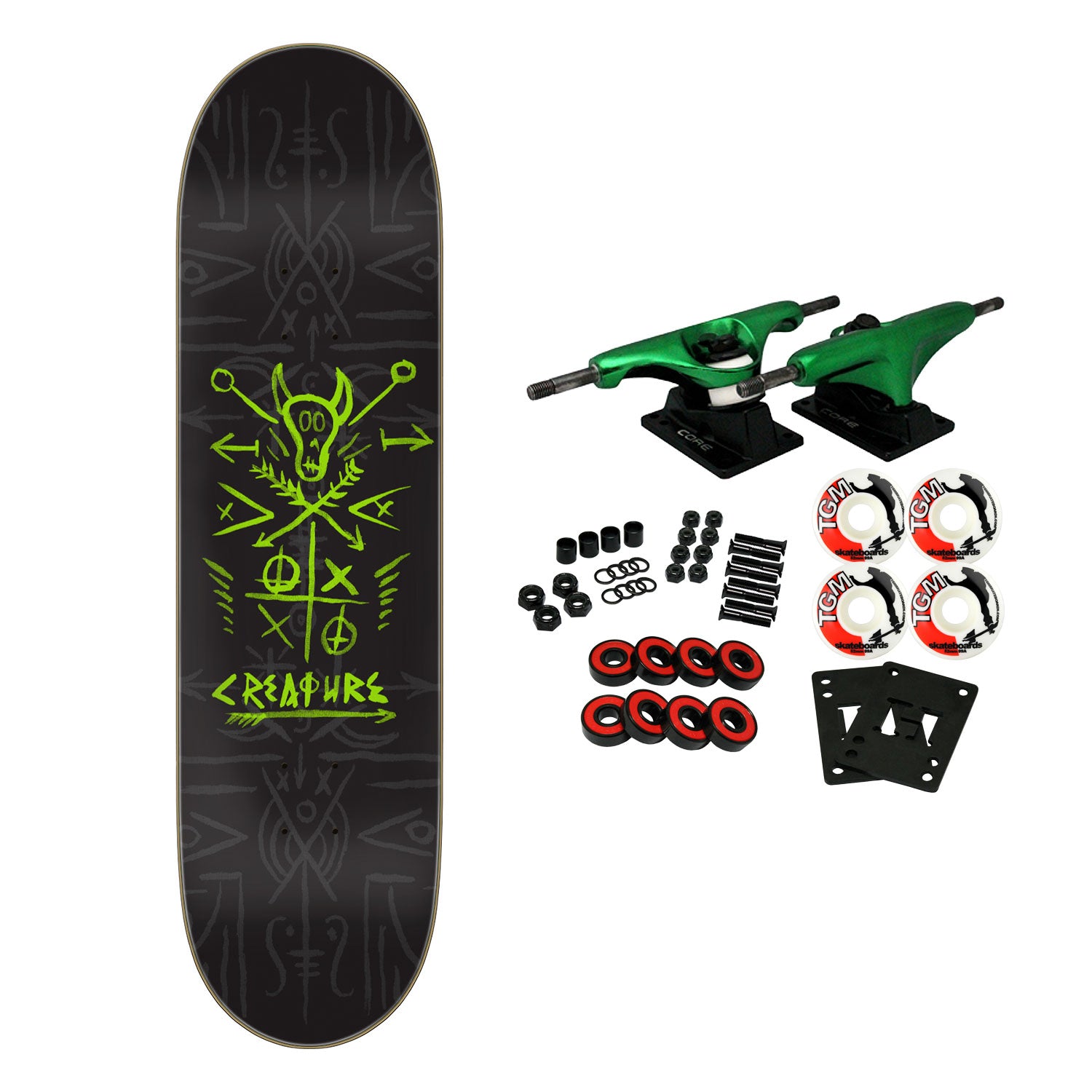 Creature is proud to offer new shapes, specifically developed with the shorter-stance rider in mind. A responsive and durable deck at an affordable price. Measures 8.0" x 30.5" with a 13" wheelbase. Comes with Core trucks, 52mm TGM logo wheels, Amp abec 5 bearings, Black Diamond Griptape, risers, and hardware. Core trucks are light weight and feature heavy duty aluminum with grade 8 steel kingpins and axles, as well as USA made bushings and pivot cups. 52mm 99A are the perfect wheels for both street and park skating. Like the name states, Amp bearings are stimulants for your wheels! Light synthetic oil, Delrin Crowns, and Rubber Serviceable Shields are a few of the things that makes these bearings one of the best Abec 5 rated bearings on the market. Arrives un-assembled which allows for customization and a feeling of accomplishment. Skaters love building their boards! Easy to assemble!